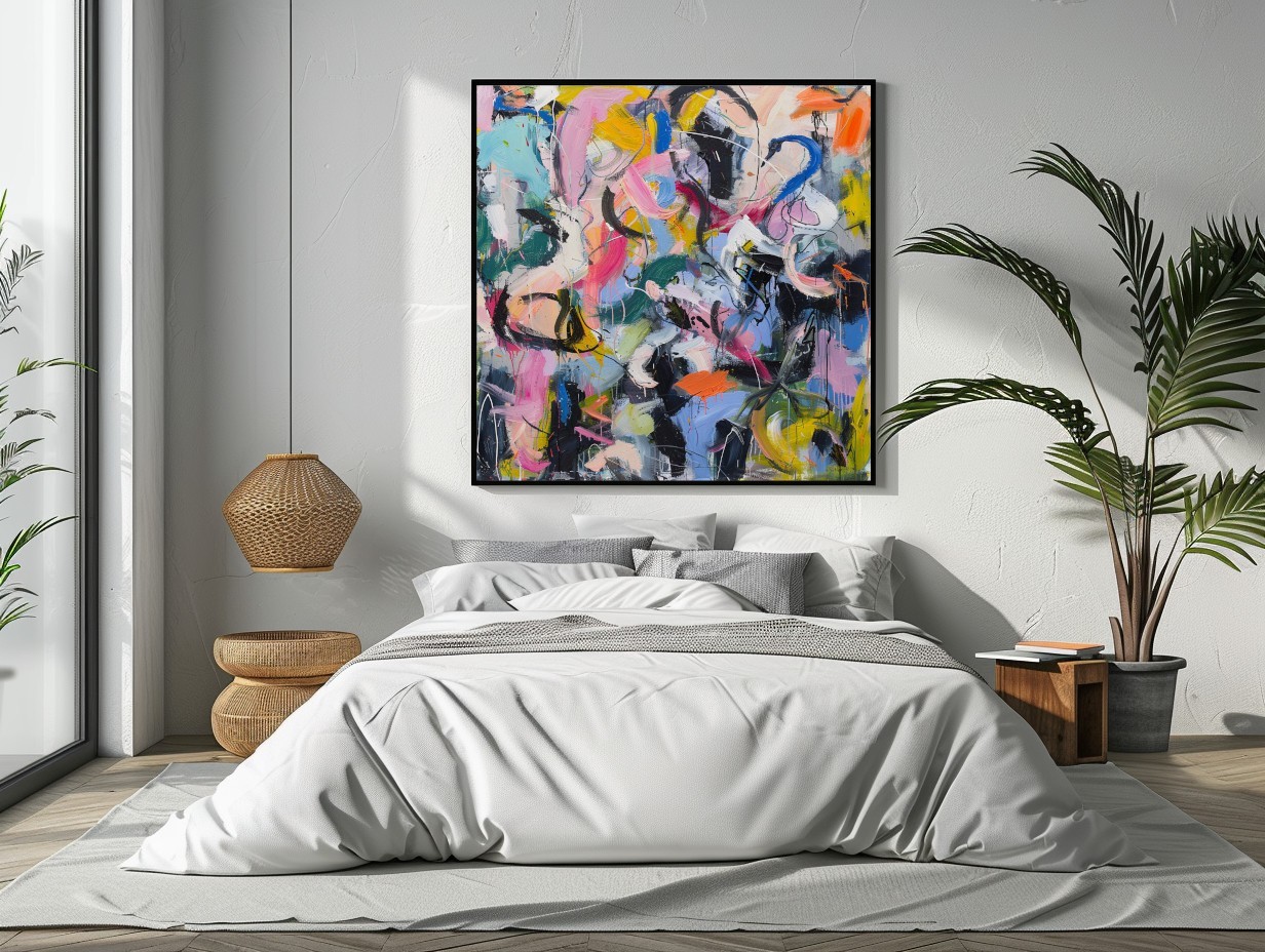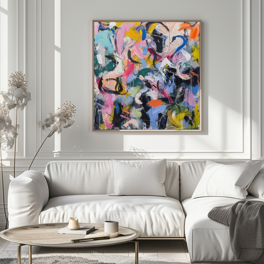 Questo dipinto astratto è una celebrazione dell’energia e della creatività pura. Le pennellate libere e audaci si intrecciano in una composizione dinamica, dove il contrasto tra colori accesi – rosa, blu, giallo, nero e verde – crea un effetto di movimento vibrante. Perfetto per arredamenti moderni e spazi di design, questo quadro è l’ideale per chi desidera un tocco di originalità e vitalità nella propria casa o ufficio. Con il suo stile contemporaneo e audace, è un'opera che attira lo sguardo e stimola la creatività.