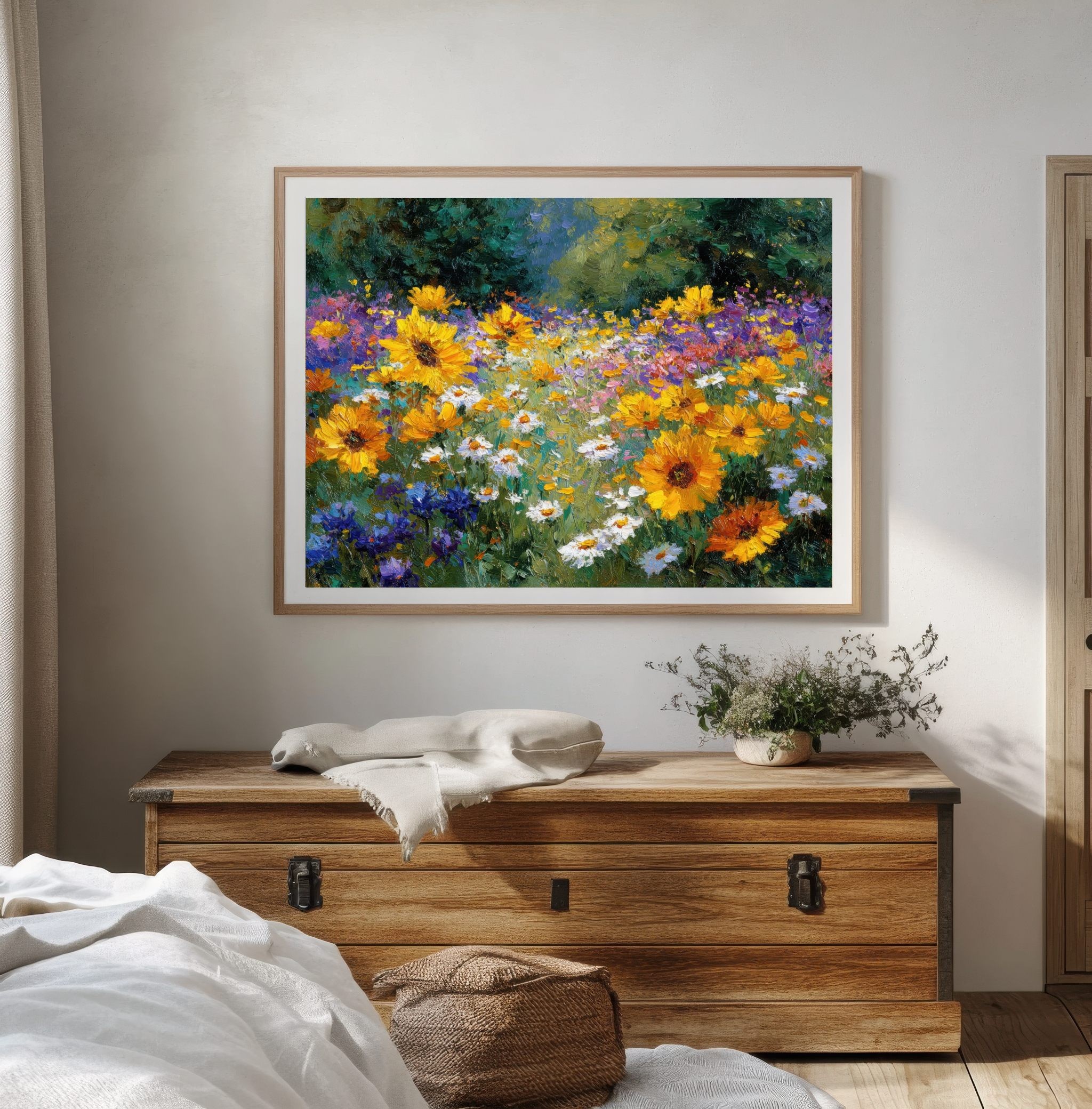 Perfetto come quadro floreale decorativo, è ideale per soggiorno, camera da letto o spazi luminosi della casa, portando nell’ambiente un’atmosfera fresca, naturale e gioiosa.