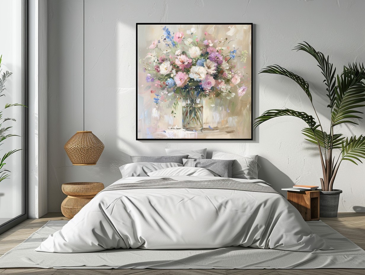 Perfetta per creare un’atmosfera di serenità e raffinatezza, questa tela è ideale per ambienti eleganti e luminosi, come un soggiorno, una camera da letto o una sala da pranzo. Un’opera che trasmette bellezza e leggerezza, aggiungendo un tocco di romanticismo e poesia agli spazi.