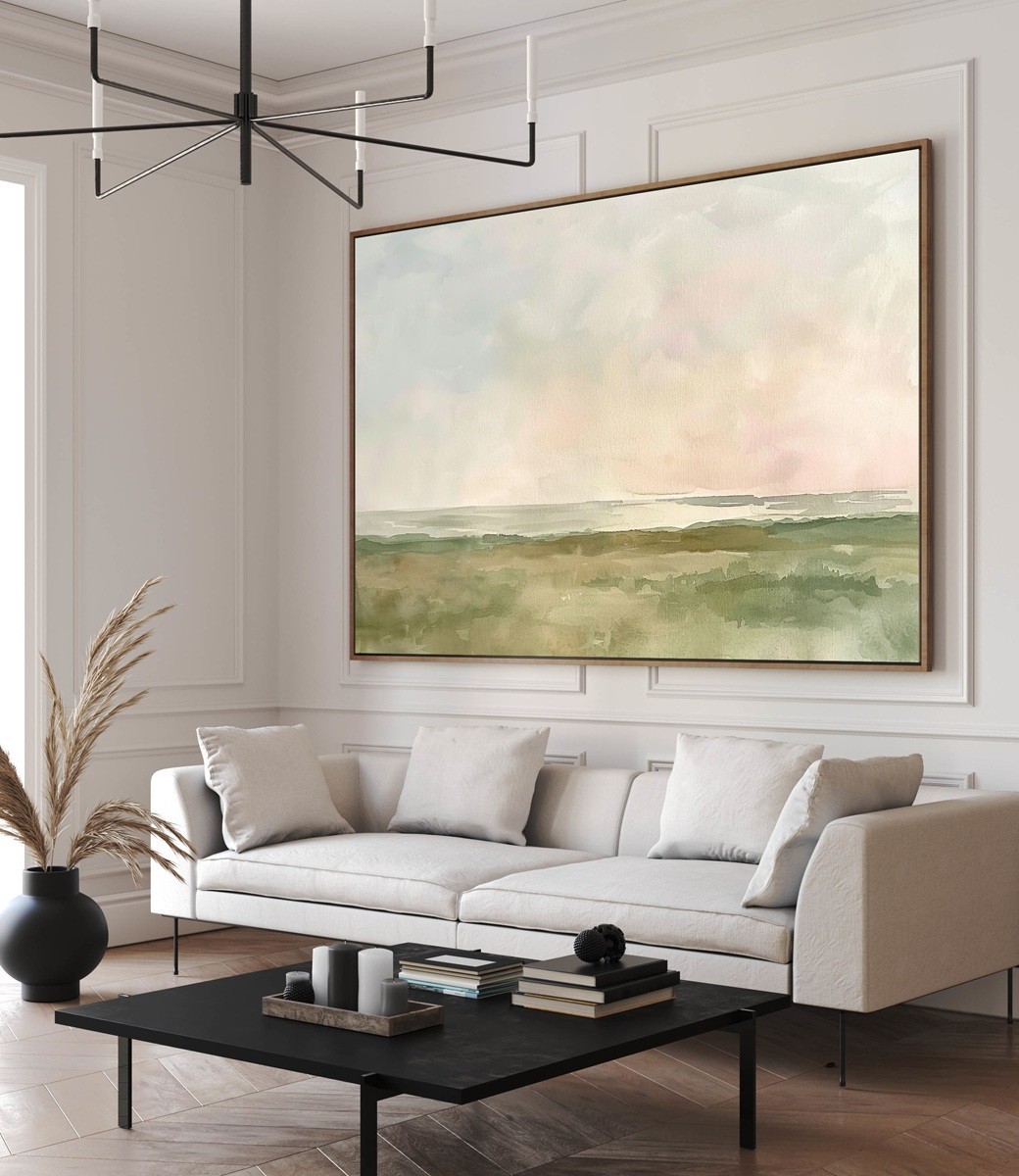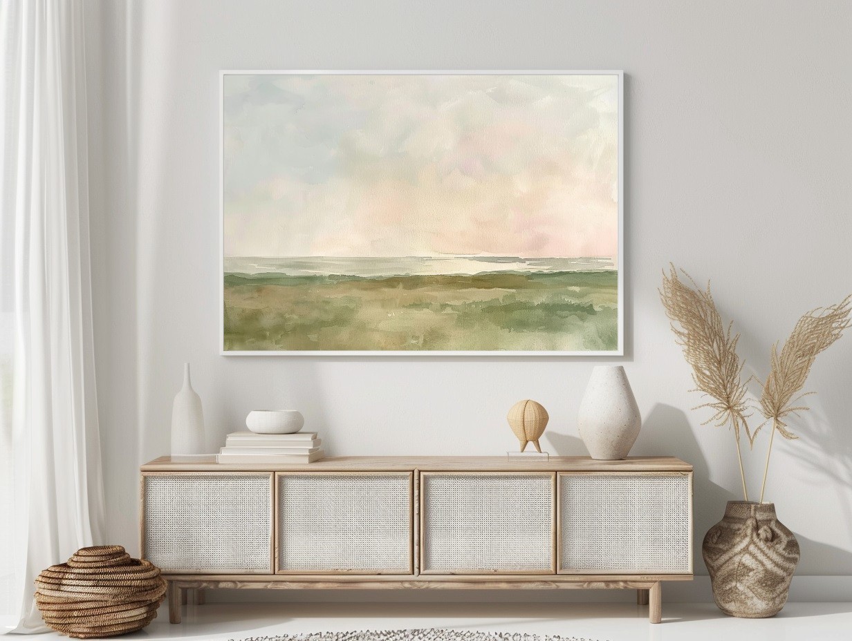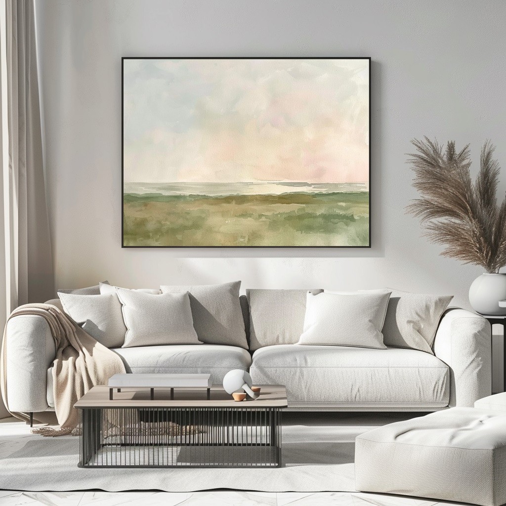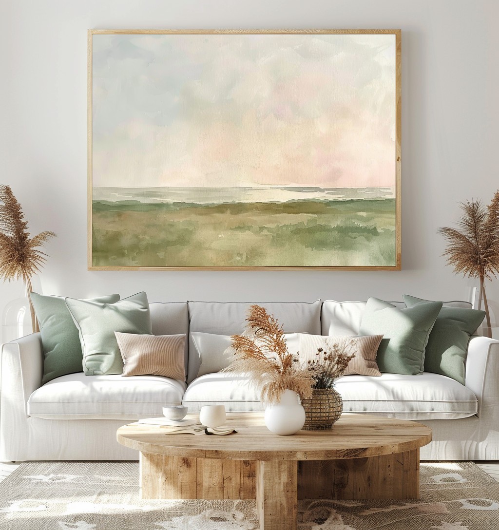 “Misty Reverie” è un quadro astratto dallo stile delicato e minimalista, realizzato con toni tenui di verde salvia, beige e rosa cipria. Le morbide sfumature acquerellate evocano un paesaggio naturale immerso nella quiete mattutina, trasmettendo calma e introspezione. Perfetto per ambienti Japandi, nordici o boho, questo dipinto dona armonia e leggerezza a qualsiasi spazio. Un’interpretazione contemporanea della natura che invita alla serenità e si integra con eleganza in salotti, camere o studi moderni.
