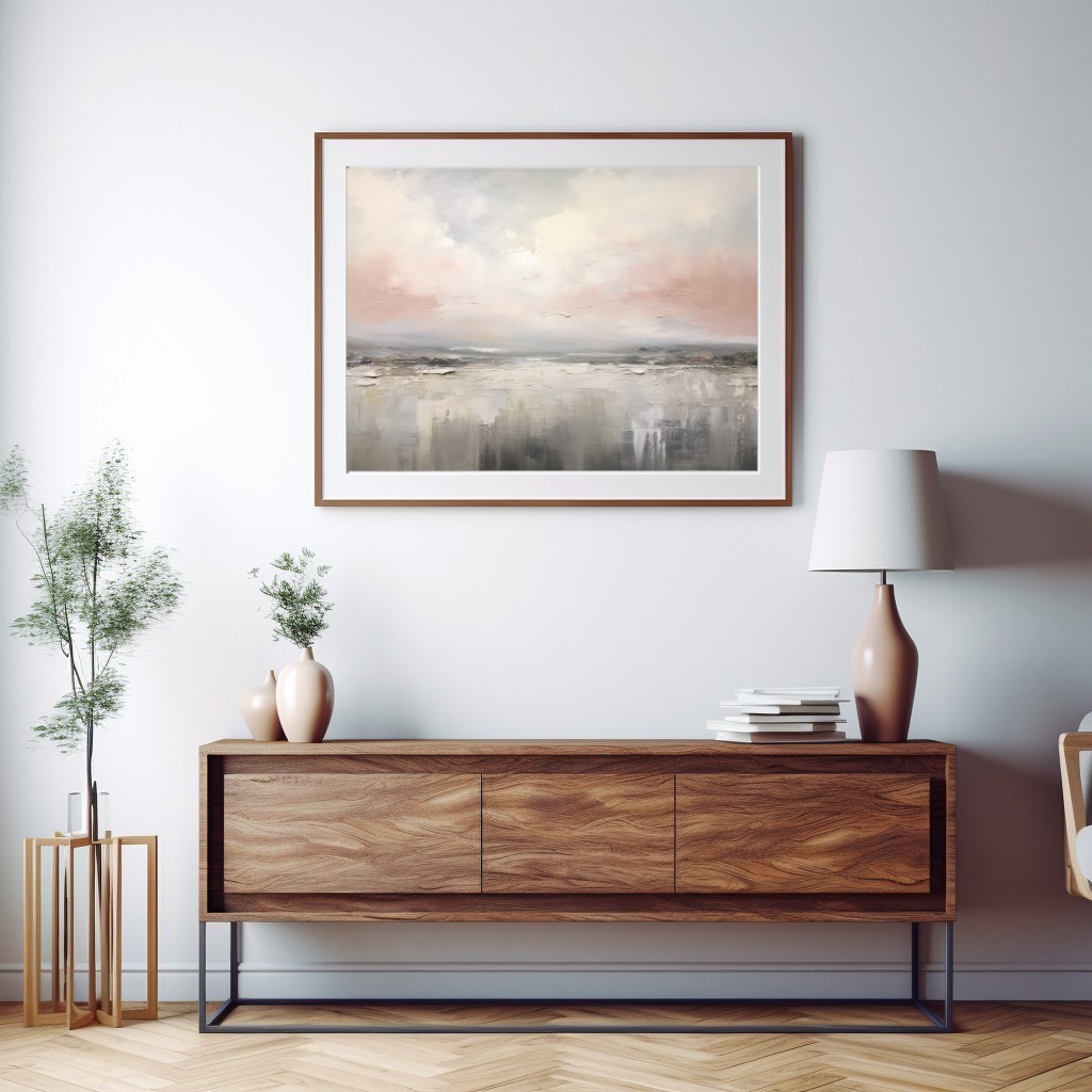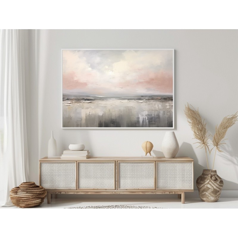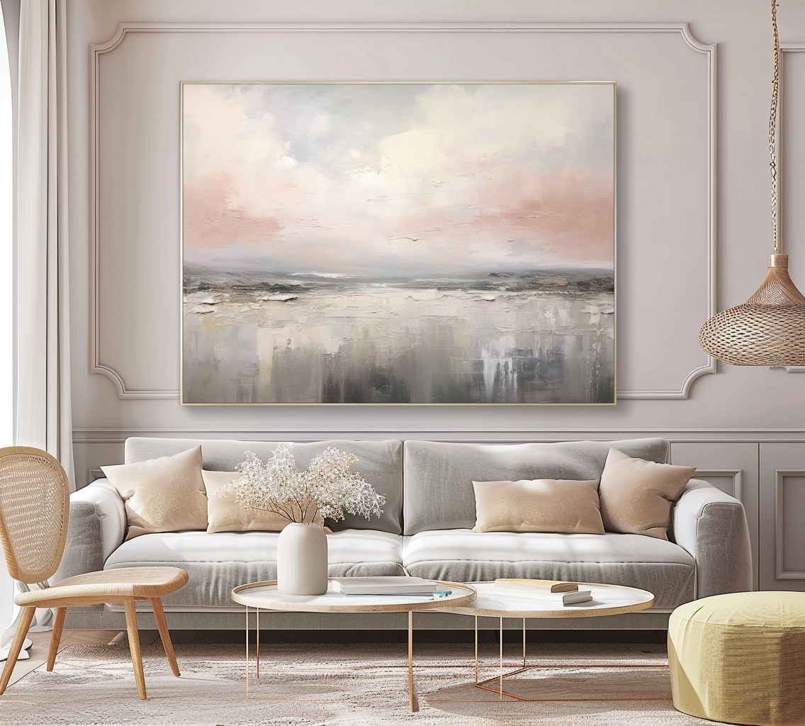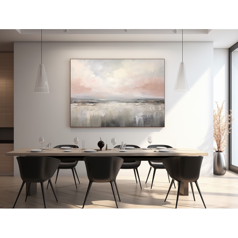 Quadro Paesaggio Astratto in Toni Rosa e Grigio