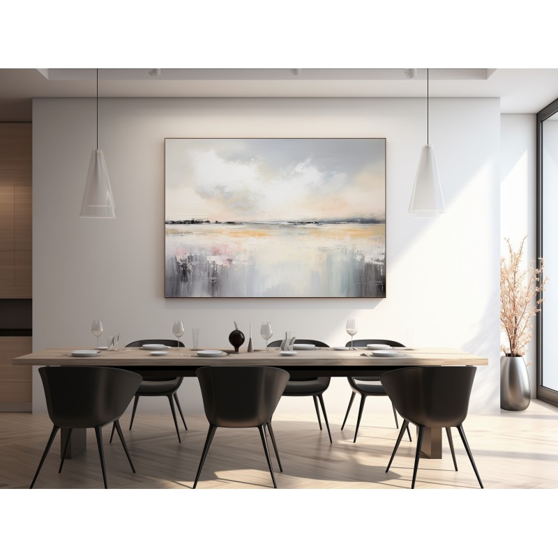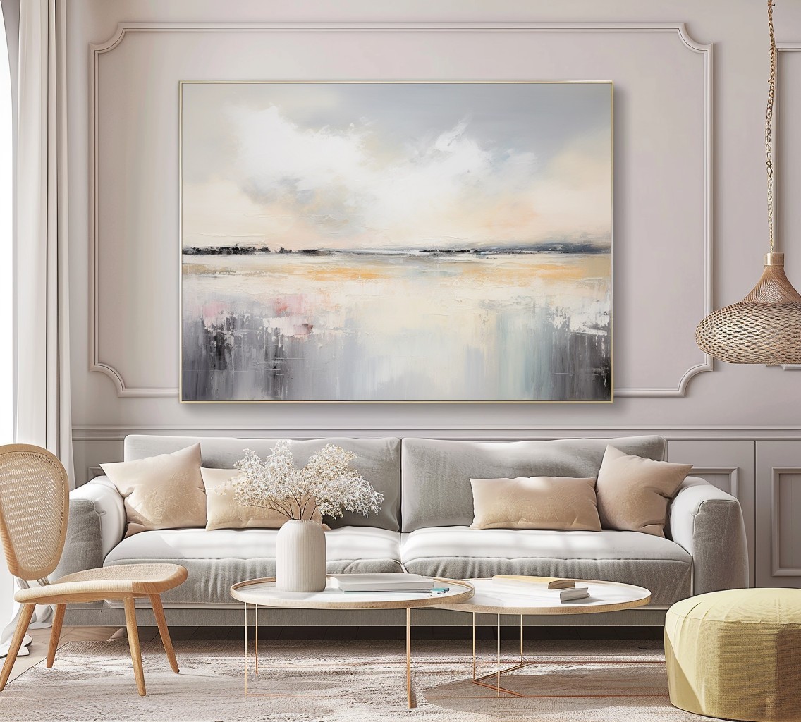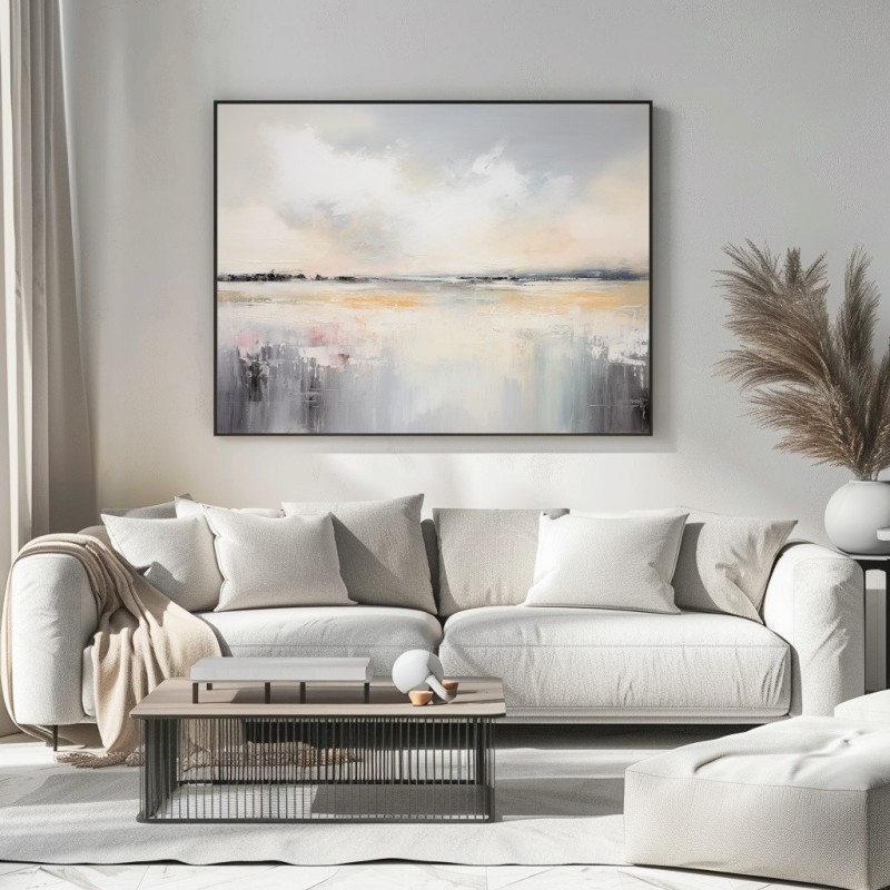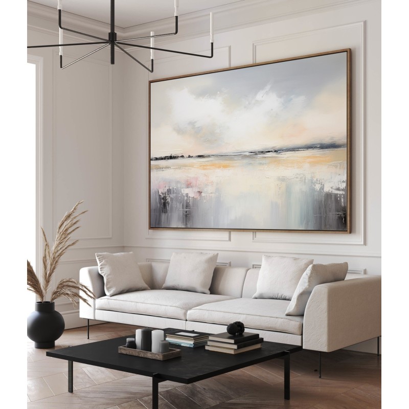 “Maritime Melodies” è un quadro astratto contemporaneo ispirato ai paesaggi costieri e alla luce del mattino. Le sfumature di grigio perla, beige dorato e tocchi rosati creano un’atmosfera delicata e armoniosa, ideale per chi cerca un’opera che trasmetta equilibrio e serenità. Le pennellate materiche e fluide evocano la calma delle acque e il respiro dell’orizzonte. Perfetto per ambienti moderni, minimal o Japandi, aggiunge luminosità e calore raffinato a soggiorni, camere o spazi di design.