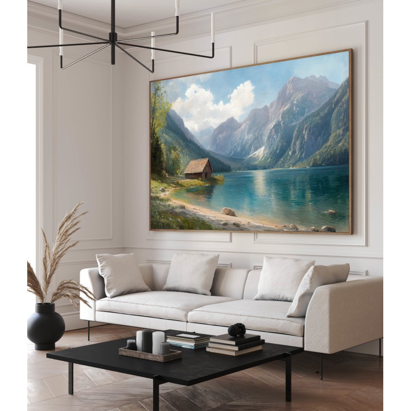 Quadro Lago di Montagna Paesaggio Alpino con Chalet sul Lago