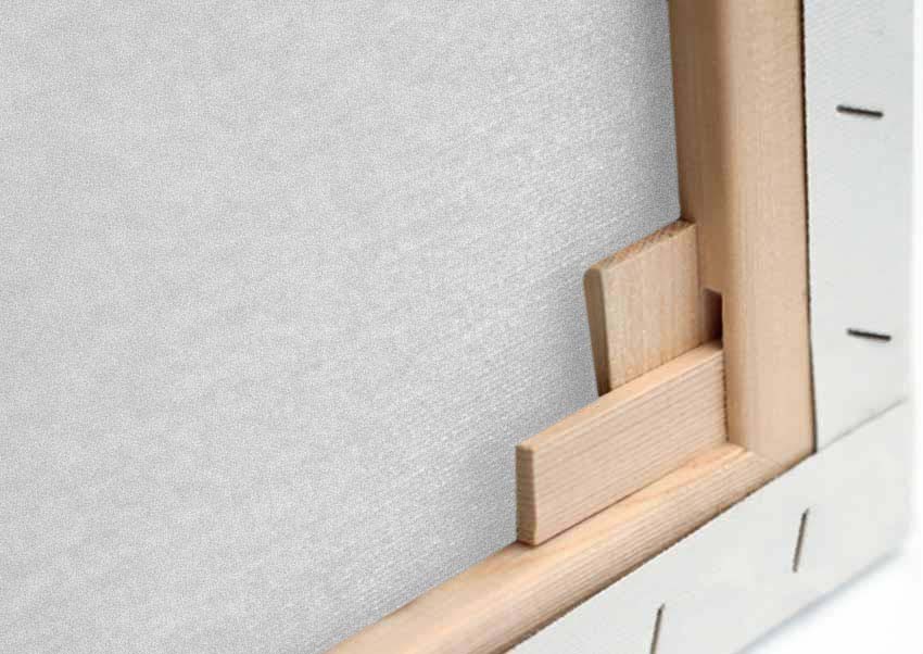 - Telaio in legno di abete ad incastro da 2cm di spessore con chiavette di tensionatura.