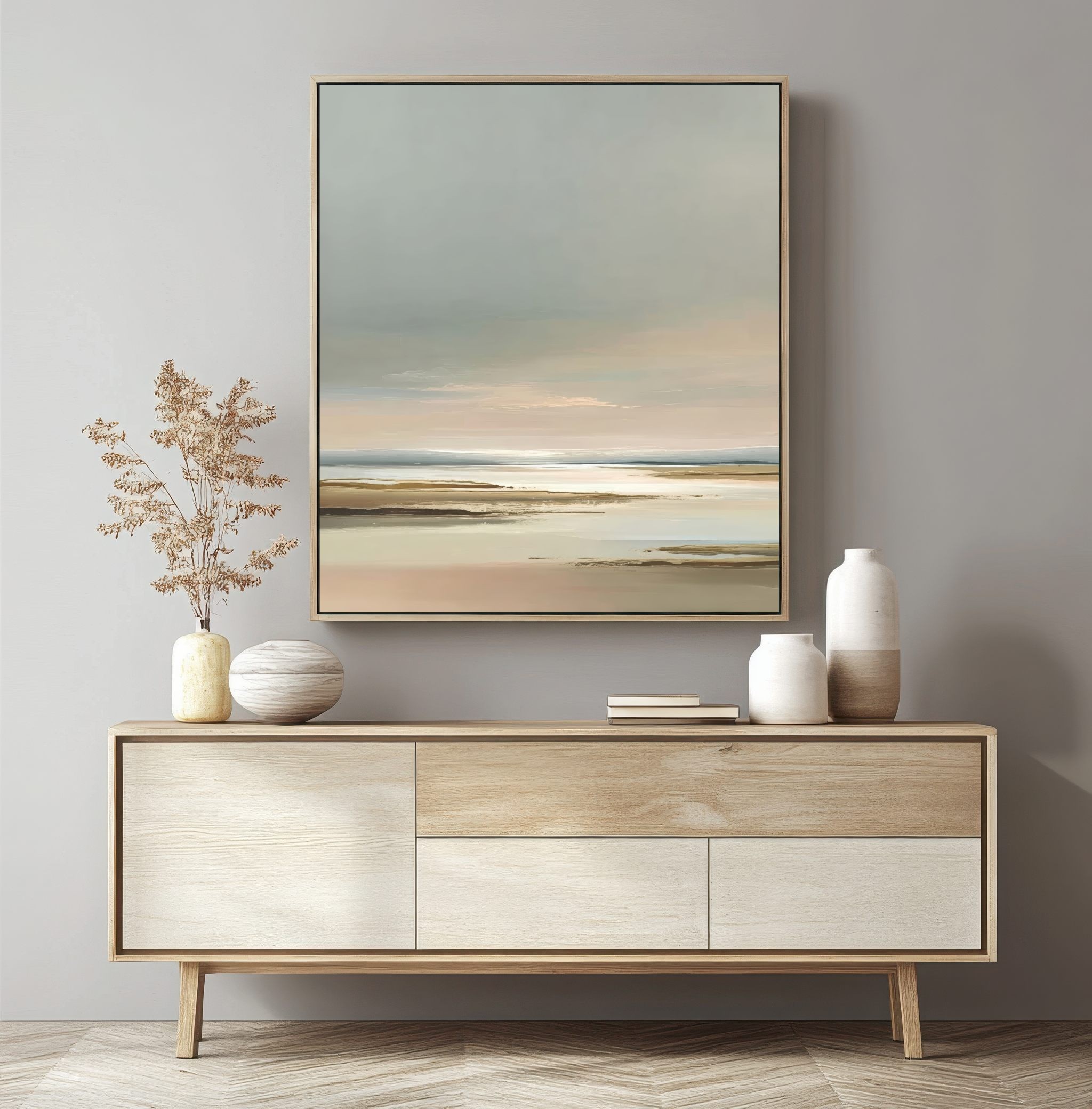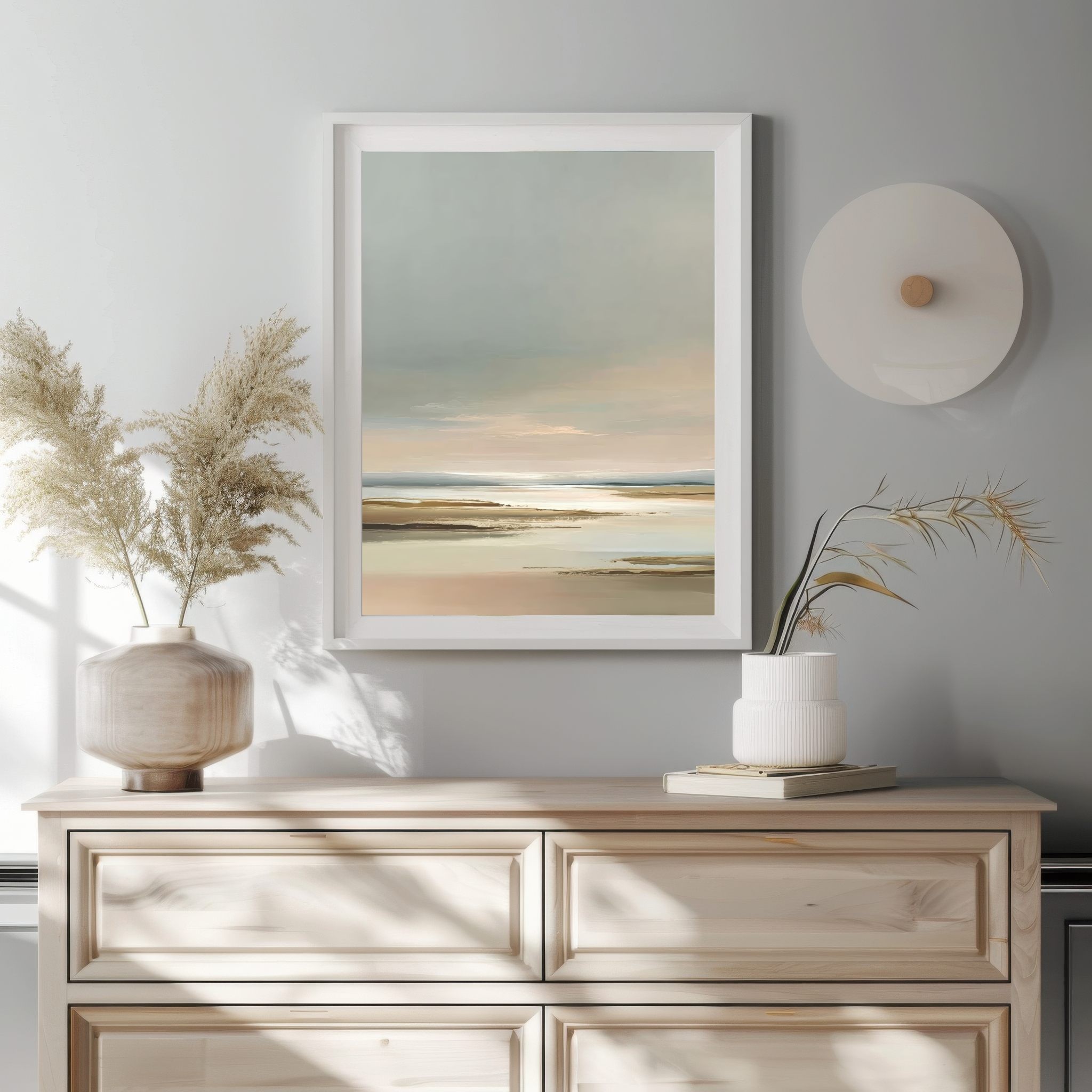 Quadro Mare Astratto Minimalista nei Toni Beige e Verde Salvia