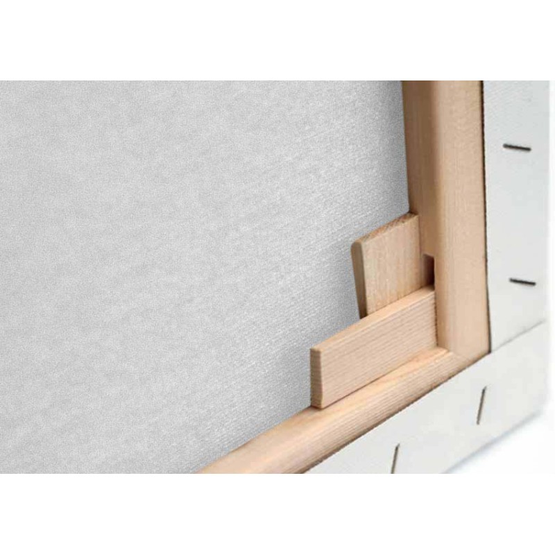 - Telaio in legno di abete ad incastro da 2cm di spessore con chiavette di tensionatura.