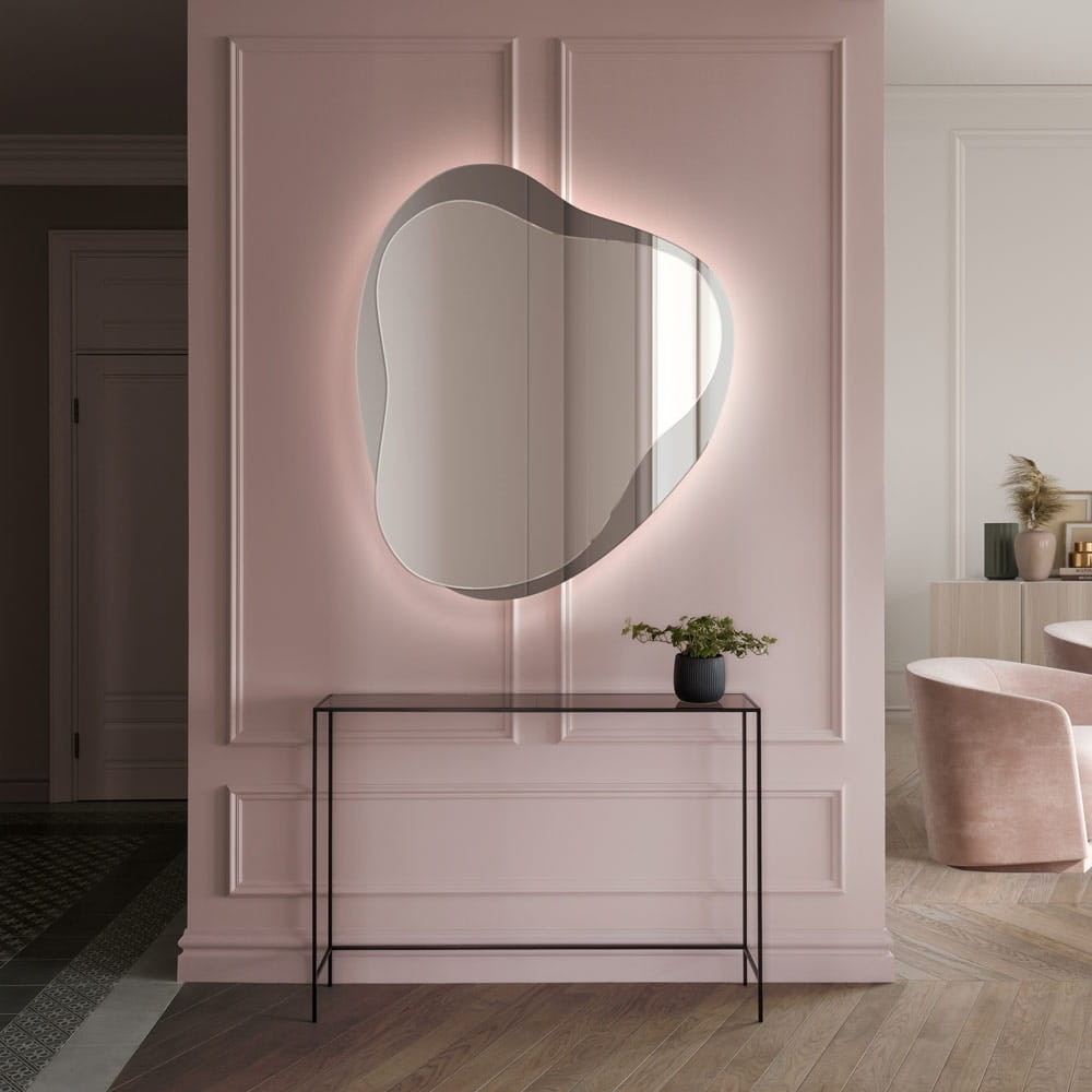 Aggiungi un tocco di charme contemporaneo con questo specchio asimmetrico con luce LED integrata, ideale per ingressi, soggiorni o camere da letto moderne. La forma fluida e organica valorizza le pareti con eleganza, mentre l’illuminazione soffusa crea un effetto luminoso raffinato e accogliente. Perfetto in ambienti con pareti color pastello o boiserie classica, questo specchio decorativo moderno unisce estetica e funzionalità, diventando un must-have nell’arredo d’interni di tendenza.