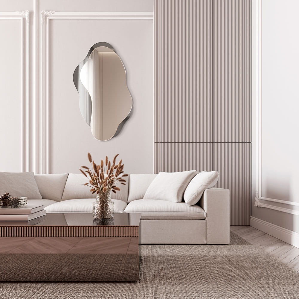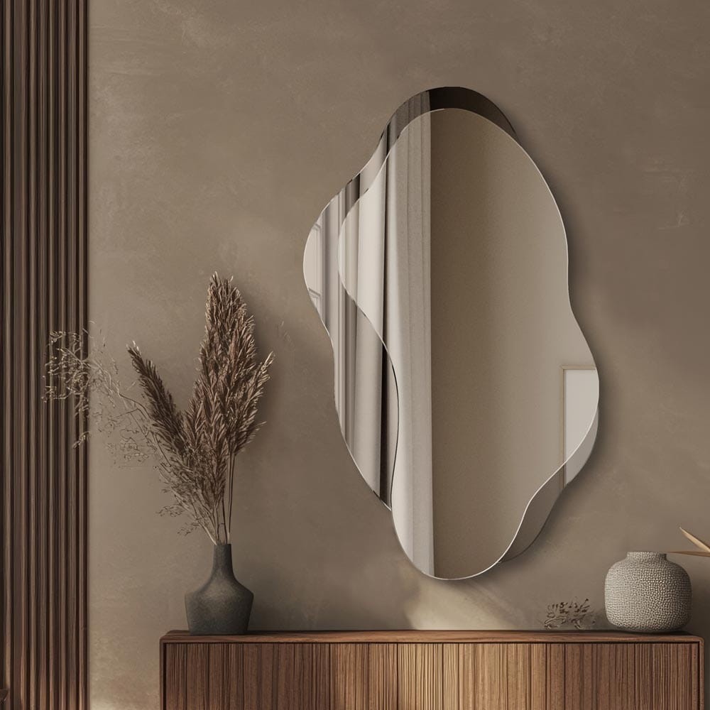 Specchio da parete con forma organica, ideale per ambienti moderni e raffinati. Questo specchio decorativo è perfetto per il soggiorno, l’ingresso o la camera da letto, dove diventa un elemento di design elegante e originale. Le linee fluide donano movimento e armonia alla parete, mentre la superficie riflettente amplifica la luce. Una scelta ideale per chi cerca uno specchio scultoreo, minimal e di forte impatto visivo per arricchire l’ambiente con personalità.