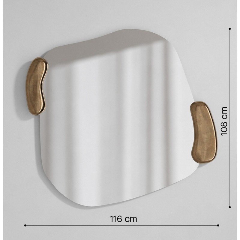 Lo specchio asimmetrico con dettagli oro è una vera dichiarazione di stile. La sua forma organica e fluida rompe la simmetria tradizionale, mentre gli eleganti inserti dorati laterali trasformano lo specchio in un autentico elemento d’arredo.