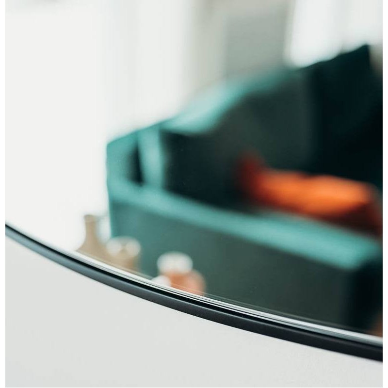 La cornice nera opaca valorizza il profilo dello specchio, rendendolo perfetto per soggiorni contemporanei, sale da pranzo di design o ingressi minimal. Abbinato a materiali naturali come legno, marmo o metallo, questo specchio moderno da parete diventa il punto focale dell’ambiente.