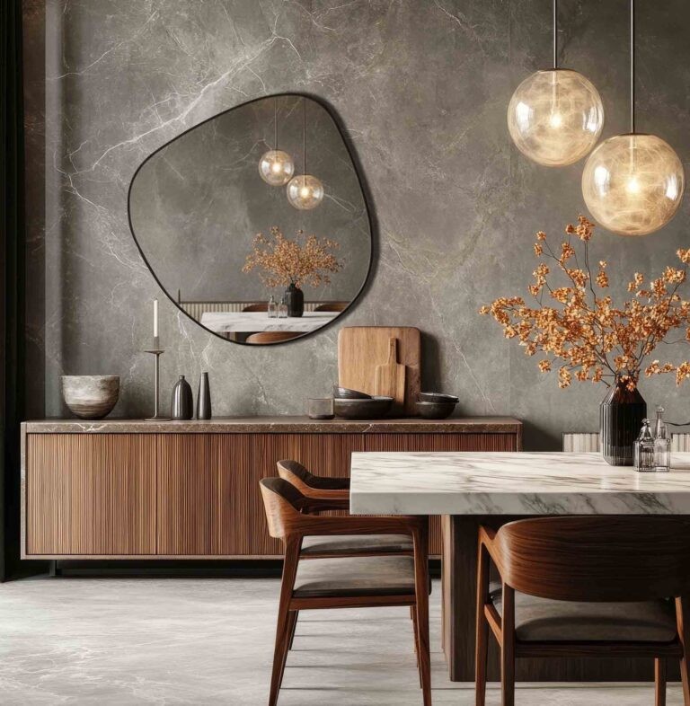 Grazie alla sua superficie riflettente ampia, amplifica la luce naturale e dona maggiore profondità alla stanza, migliorando la percezione dello spazio.