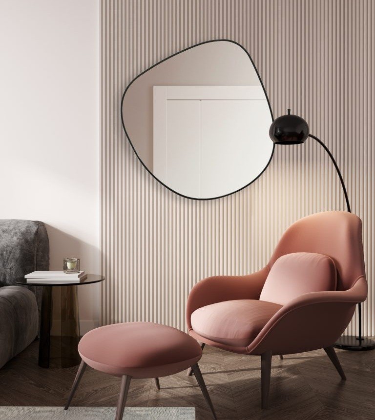 Questo specchio asimmetrico con cornice nera sottile è l'accessorio perfetto per aggiungere stile e luminosità al tuo ingresso, soggiorno o camera da letto. Il suo design organico e contemporaneo crea un effetto visivo accattivante, adattandosi a interni moderni, minimalisti e scandinavi. Ideale per chi cerca un specchio decorativo unico, amplifica lo spazio e aggiunge un tocco di eleganza sofisticata.