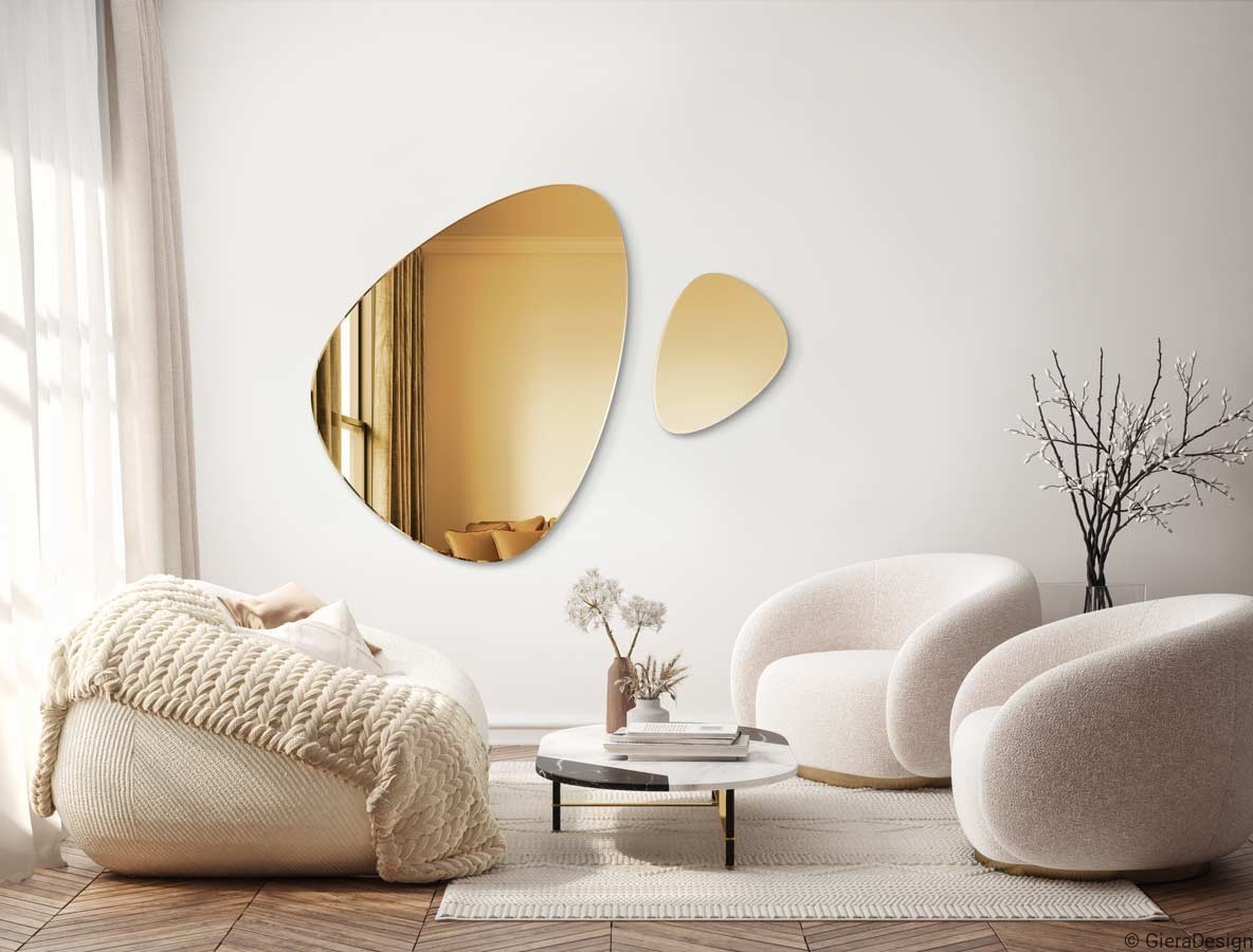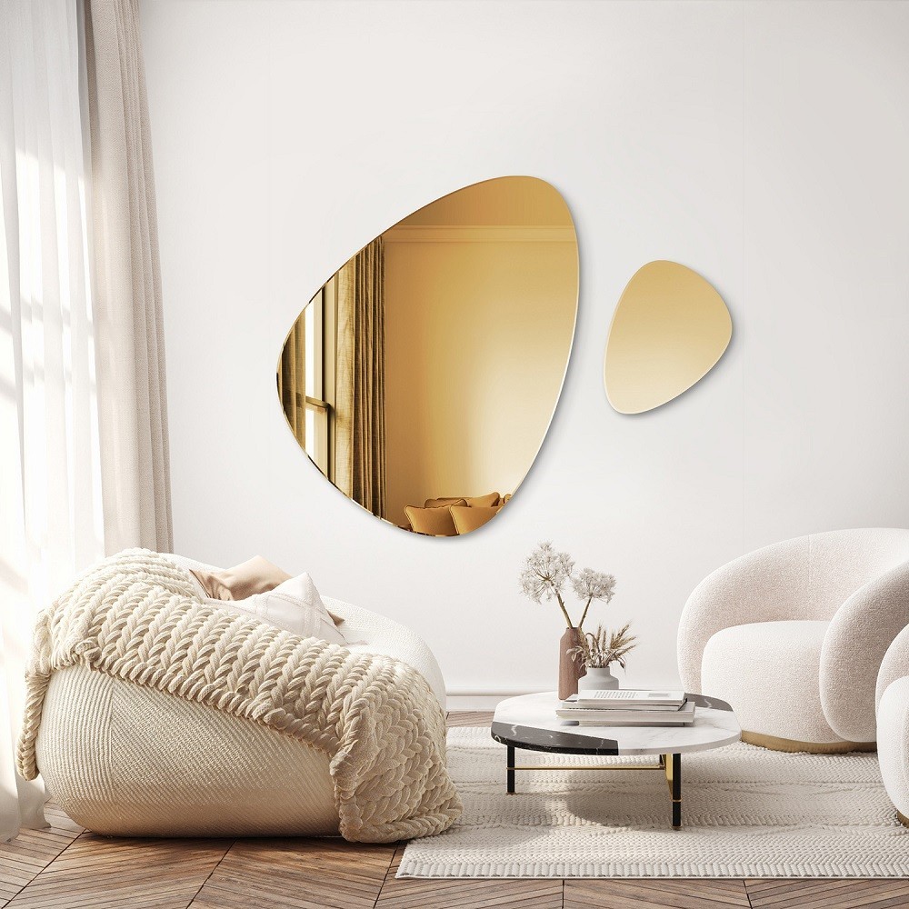 Questo elegante specchio dorato asimmetrico è perfetto per aggiungere calore e raffinatezza agli ambienti moderni. La superficie dorata riflette una luce morbida e avvolgente, ideale per ingressi, soggiorni contemporanei o camere da letto di design. Realizzato con materiali di alta qualità, questo specchio decorativo da parete unisce estetica e funzionalità, valorizzando spazi in stile luxury, minimal chic o boho raffinato. La forma organica e fluida dona dinamismo all’ambiente, trasformando ogni parete in un elemento di grande impatto visivo. Uno specchio di design per chi ama dettagli esclusivi e ambienti sofisticati.