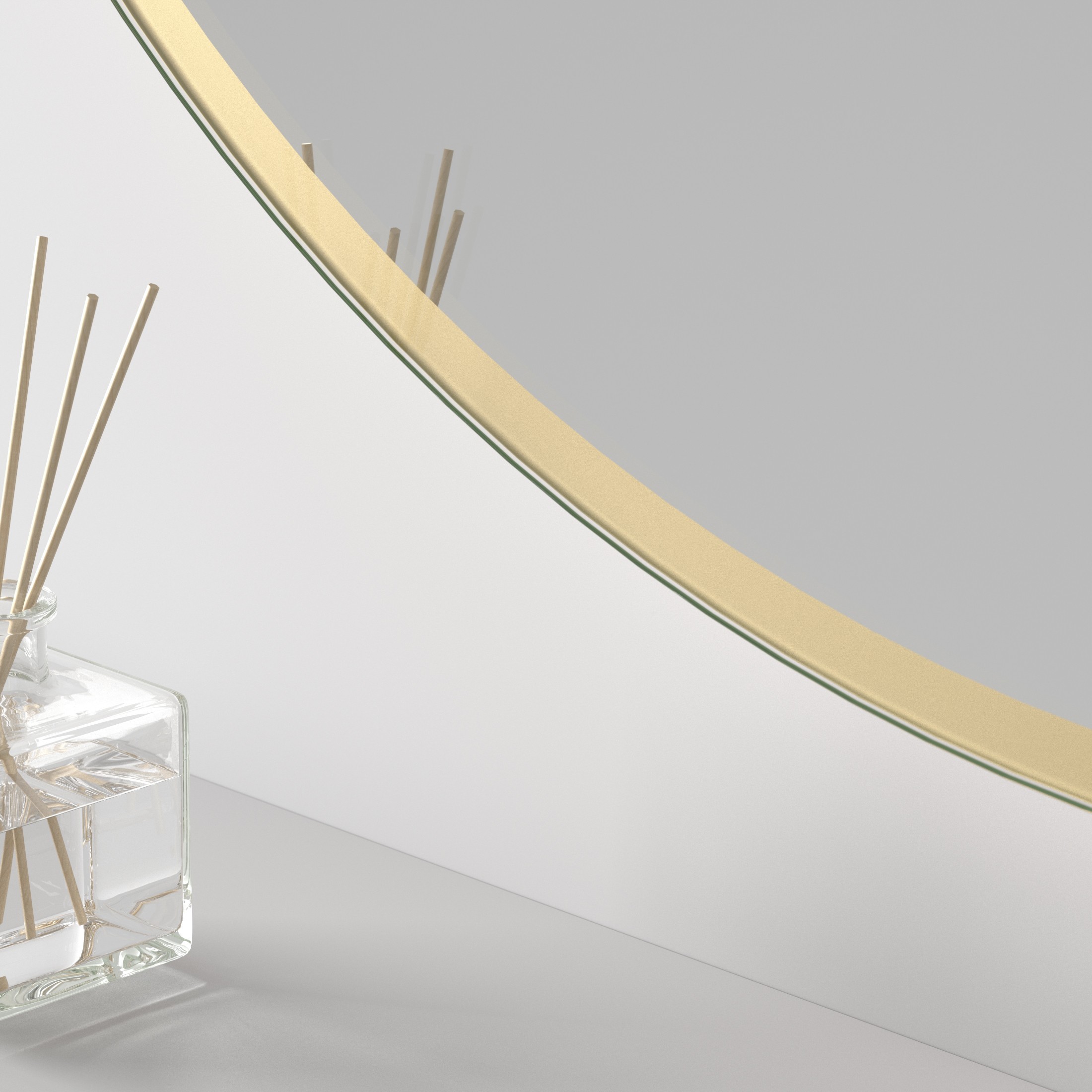 Lo specchio rotondo con contorno dorato è un complemento d’arredo che unisce modernità ed eleganza. La cornice sottile color oro, dipinta sul retro del vetro, dona luminosità e un tocco di lusso discreto senza appesantire la superficie. La composizione a due cerchi sovrapposti crea un effetto scenografico e originale, perfetto per ambienti raffinati. Realizzato in cristallo di alta qualità, questo specchio bagno moderno garantisce resistenza, nitidezza e lunga durata, trasformando la zona lavabo in uno spazio esclusivo e sofisticato.