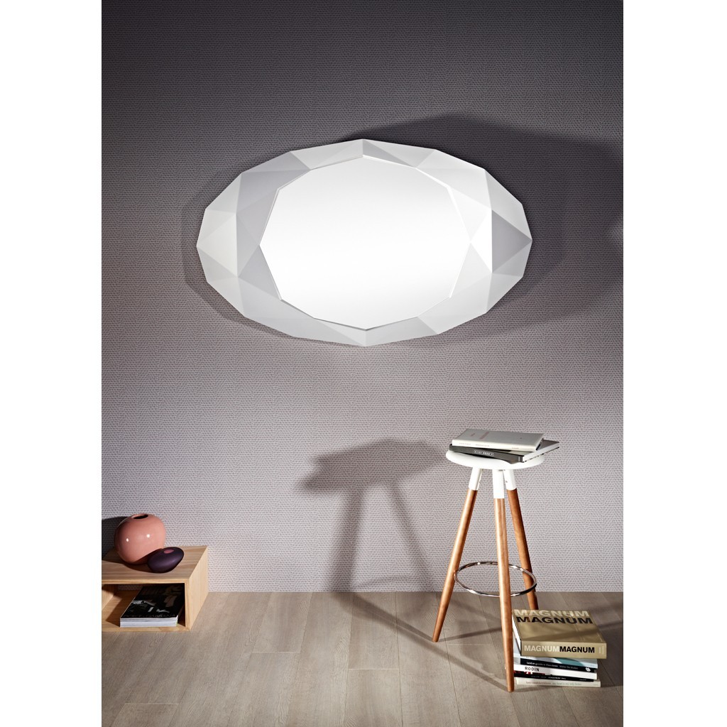 Specchio di design moderno "Precious White" con cornice realizzata in poliuretano con finitura bianca opaca. Questo specchio sarà perfetto per qualsiasi interno dallo stile moderno. Progettato e fabbricato in Belgio, questo specchio decorativo offre un'eccellente trasparenza e un alto livello di brillantezza. Assemblato con cura per rafforzare la sua originalità e unicità.
