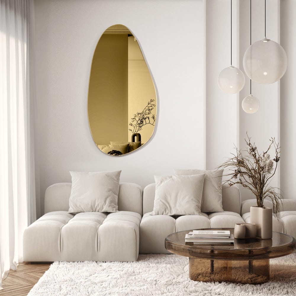 Il design di questo specchio dalla forma irregolare è ispirato alle forme che assumono i liquidi versati su una superficie piana o alle pozzanghere di pioggia. Le linee morbide e fluide dello specchio donano leggerezza e originalità allo spazio, rompendo l'ordine geometrico degli interni. Questo specchio dalla forma organica è una decorazione unica per il soggiorno, l'ingresso o la camera da letto. Si adatta perfettamente sia agli interni moderni che a quelli in stile Japandi o Wabi-Sabi.