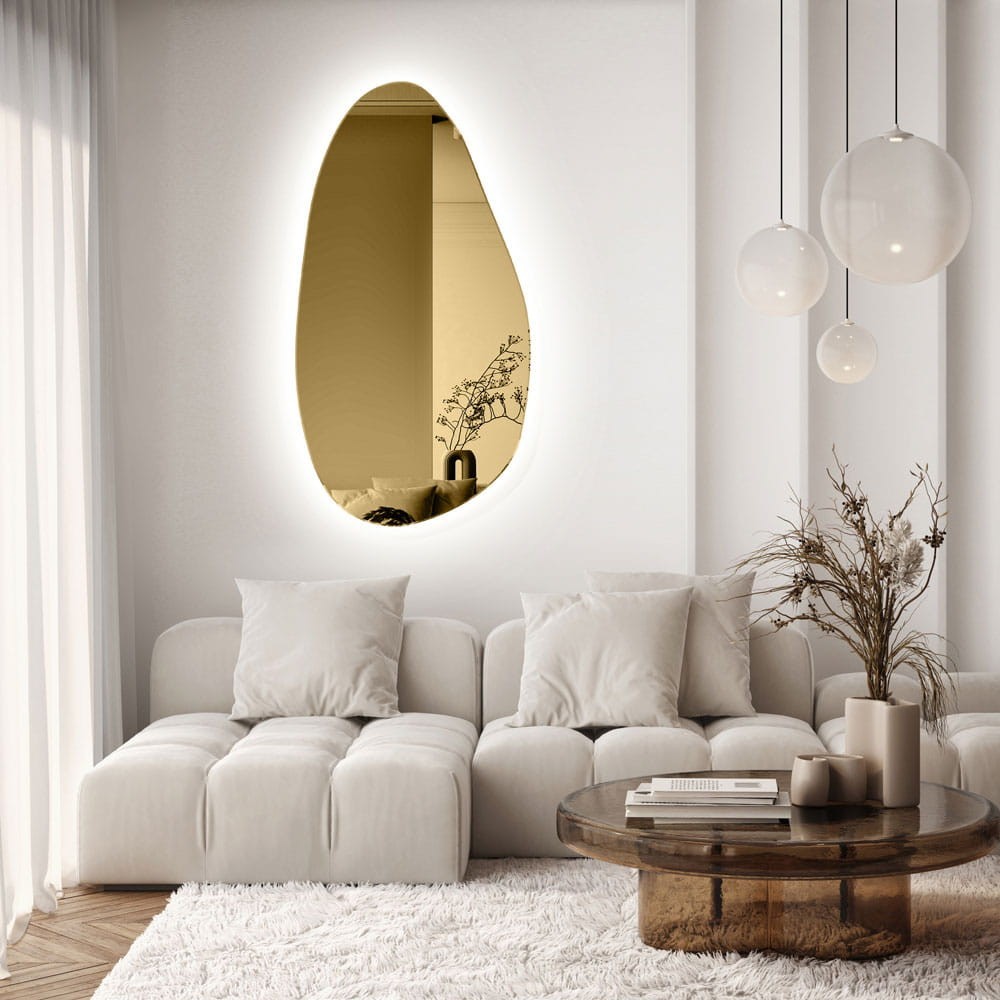 Specchio Asimmetrico Retroilluminato Dorato