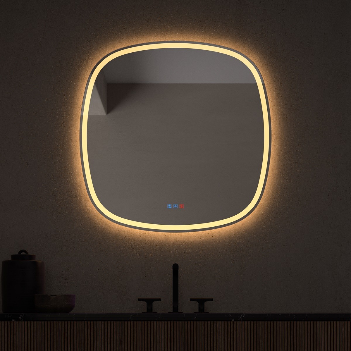 Specchio bagno dal design curvo e armonioso, con bordi dolcemente sagomati che creano un effetto visivo naturale e raffinato. La retroilluminazione LED perimetrale diffonde una luce calda e avvolgente, ideale per dare profondità e comfort all’ambiente. Realizzato in vetro di alta qualità, è dotato di pulsante touch per accendere, spegnere e regolare la tonalità della luce. Lo stile contemporaneo e la forma fluida lo rendono perfetto per bagni moderni e spazi dal gusto minimalista o organico.