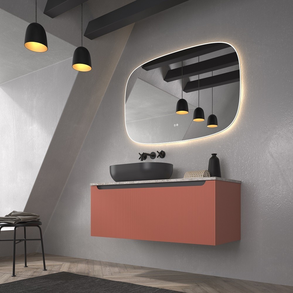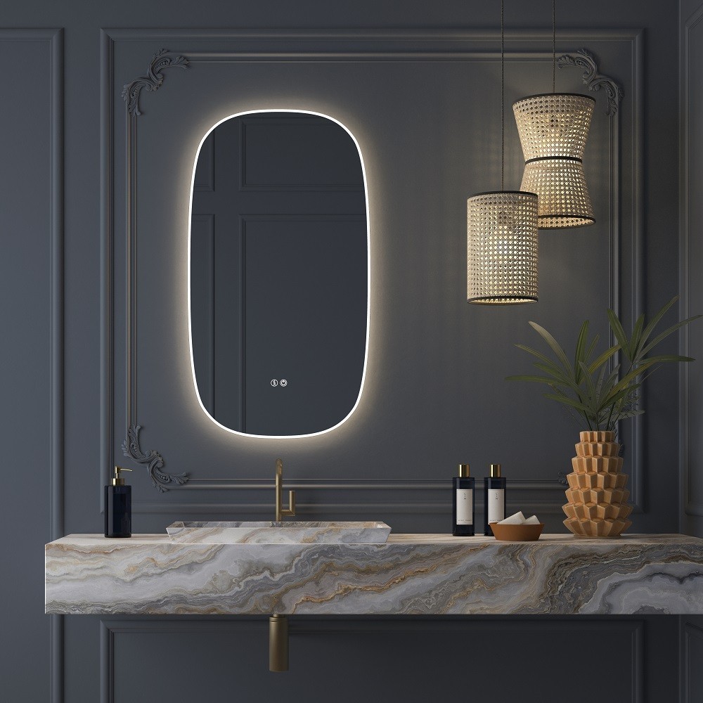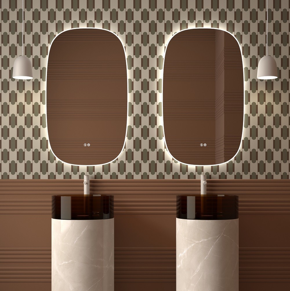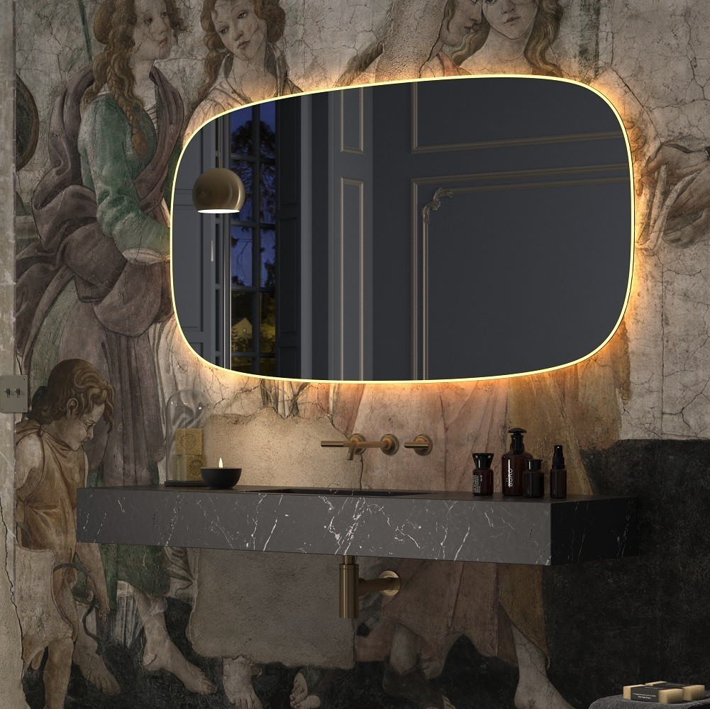Questo specchio retroilluminato da bagno con angoli arrotondati e forma leggermente irregolare è un complemento d’arredo elegante e contemporaneo. La luce LED diffusa lungo il perimetro crea un’illuminazione uniforme e accogliente, ideale per donare atmosfera e praticità quotidiana. Realizzato in vetro di alta qualità, lo specchio bagno moderno è resistente e facile da installare, perfetto per arredare spazi dal design minimalista o sofisticato. Un dettaglio raffinato che valorizza l’ambiente trasformandolo in un bagno moderno e funzionale.