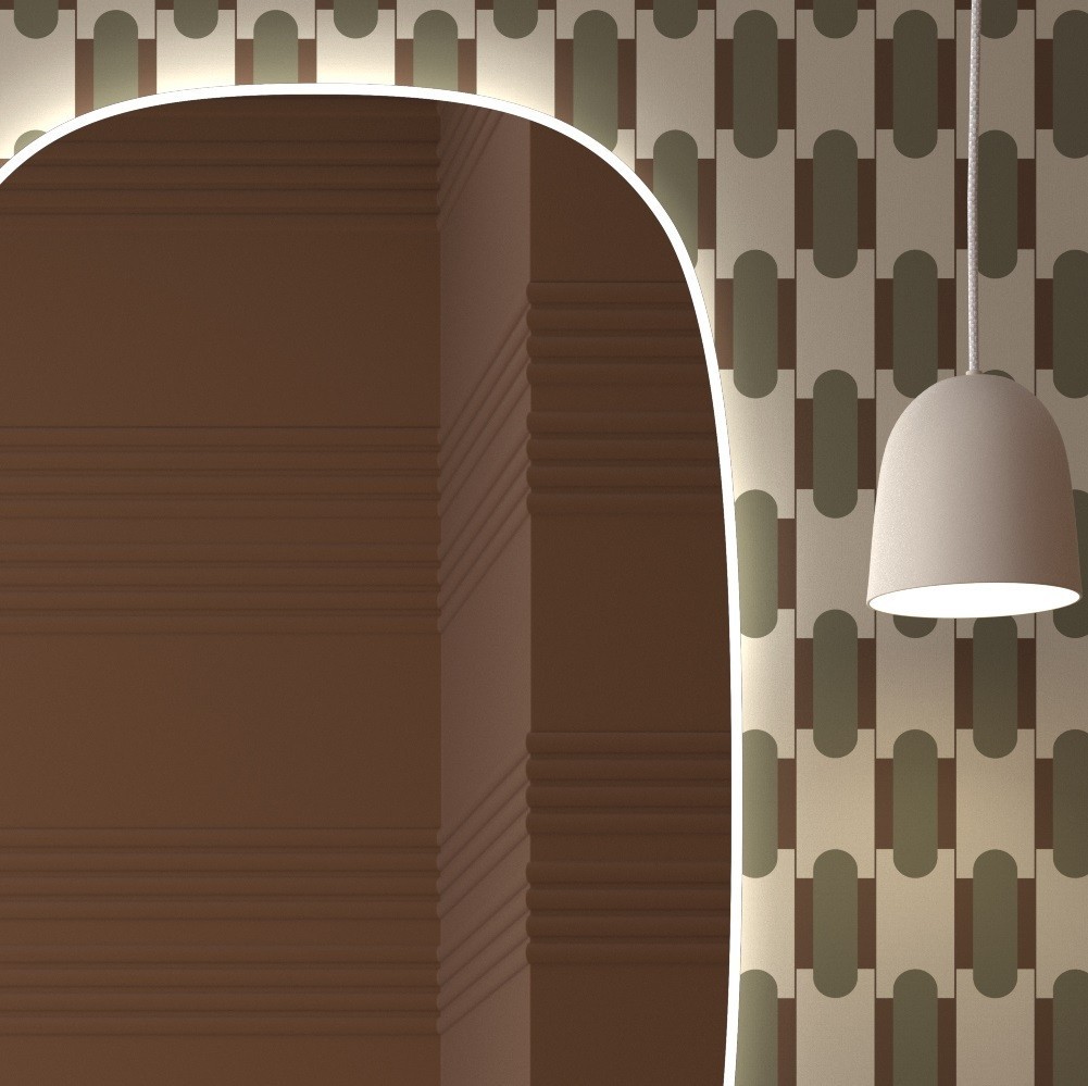 Lo specchio dispone di un'illuminazione ambientale indiretta perimetrale (luce murale) e di un'altra diretta emessa dalla parte frontale (vetro sabbiato).