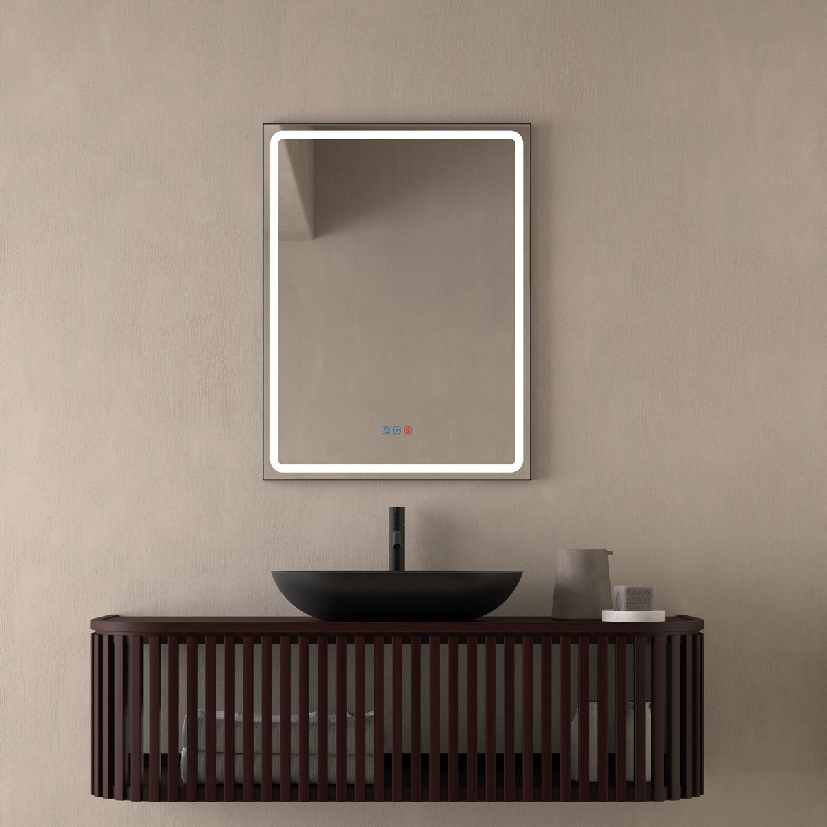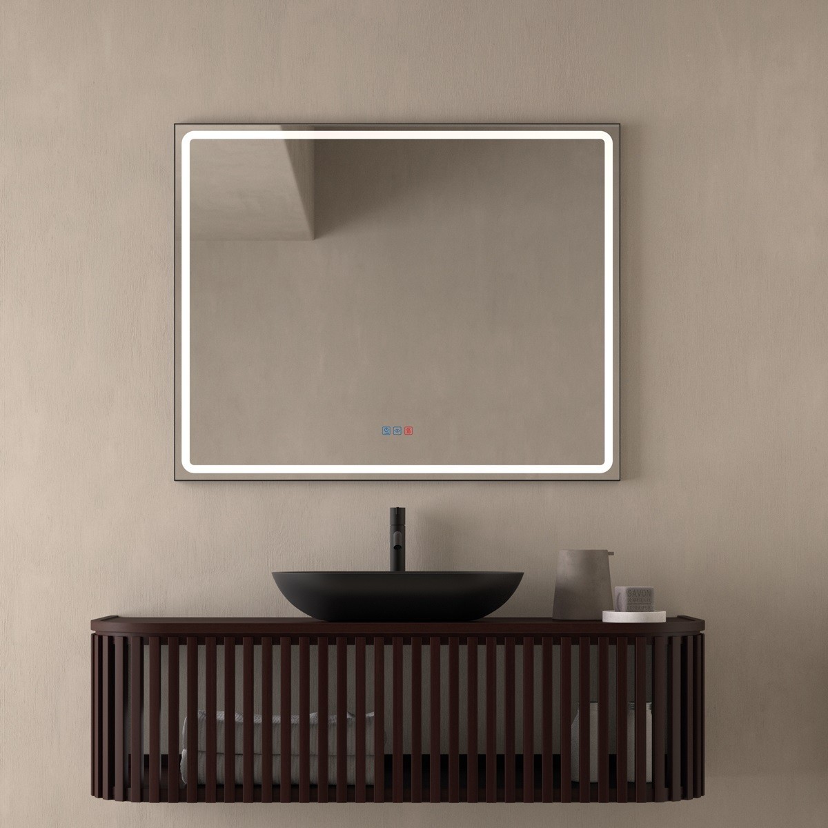 Specchio Bagno Rettangolare LED Cornice Nera
