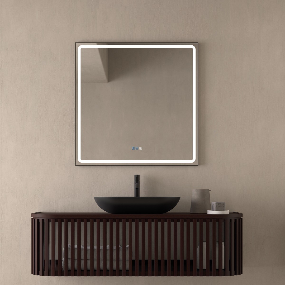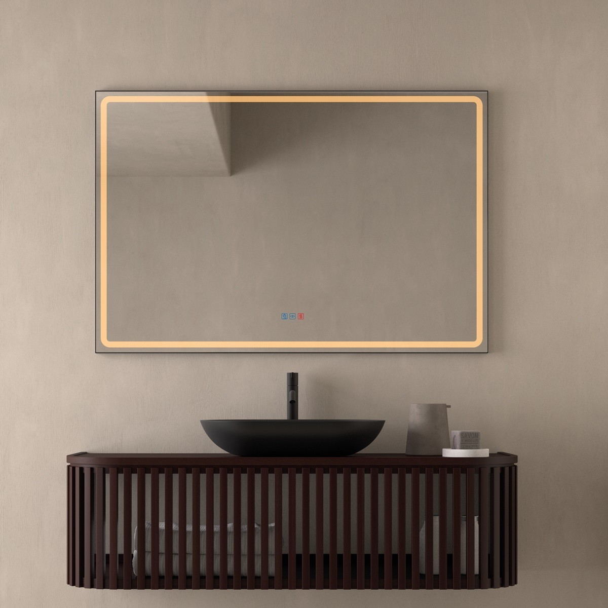 Elegante e moderno, questo specchio bagno rettangolare con cornice nera aggiunge un tocco raffinato a qualsiasi ambiente. Il profilo sottile in nero opaco incornicia perfettamente il vetro, esaltato dalla illuminazione LED perimetrale che diffonde una luce uniforme e rilassante. Realizzato in vetro di alta qualità, offre un riflesso chiaro e naturale. Perfetto per bagni contemporanei o minimalisti, combina estetica e funzionalità in un unico elemento di design. Disponibile in varie dimensioni su richiesta.