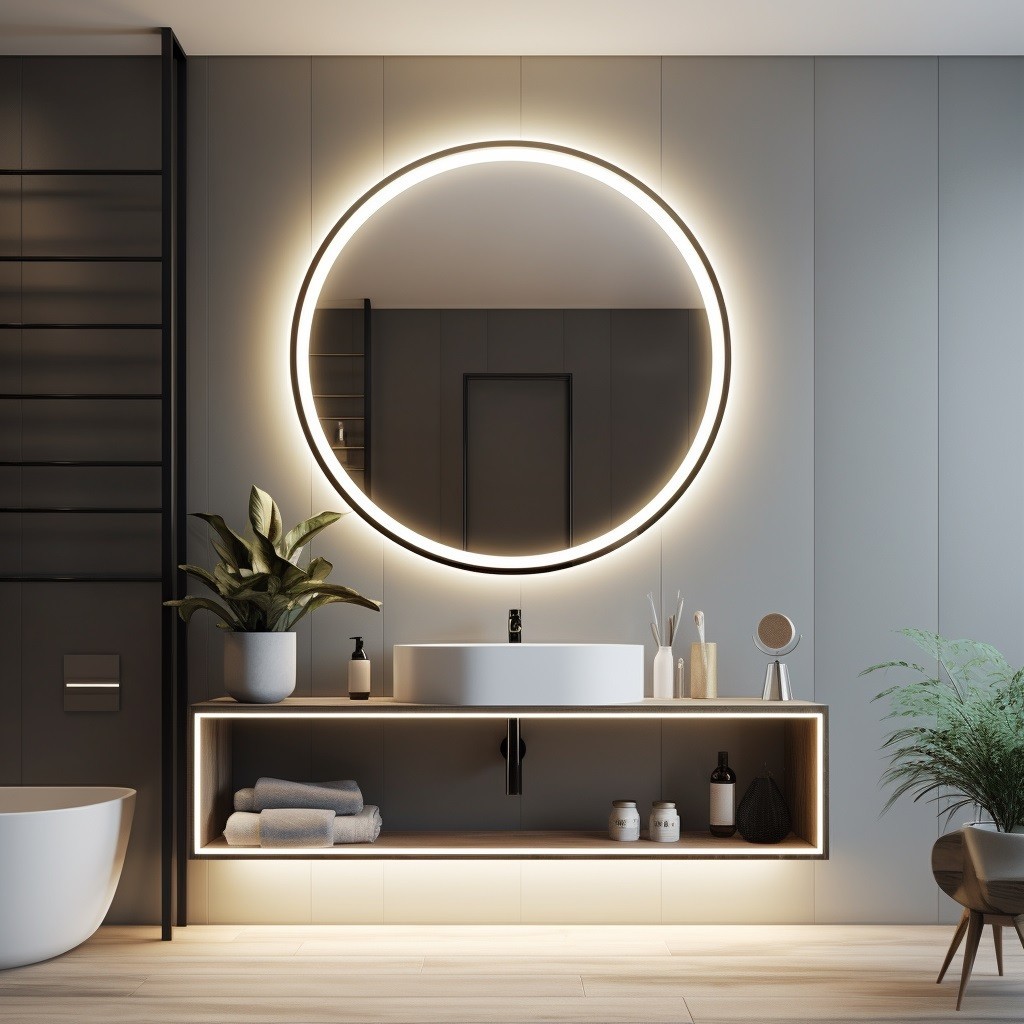 Questo specchio rotondo retroilluminato LED con cornice sottile è un elemento di design raffinato per bagni moderni e contemporanei. La retroilluminazione diffusa crea un effetto luminoso uniforme e suggestivo, ideale per la cura quotidiana e per valorizzare l’ambiente con atmosfera elegante. La cornice minimalista sottolinea la forma circolare, simbolo di armonia ed equilibrio. Realizzato in vetro di alta qualità, lo specchio bagno illuminato è resistente, pratico e facile da installare. Un complemento versatile che trasforma il bagno in uno spazio sofisticato e accogliente.