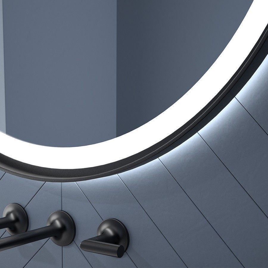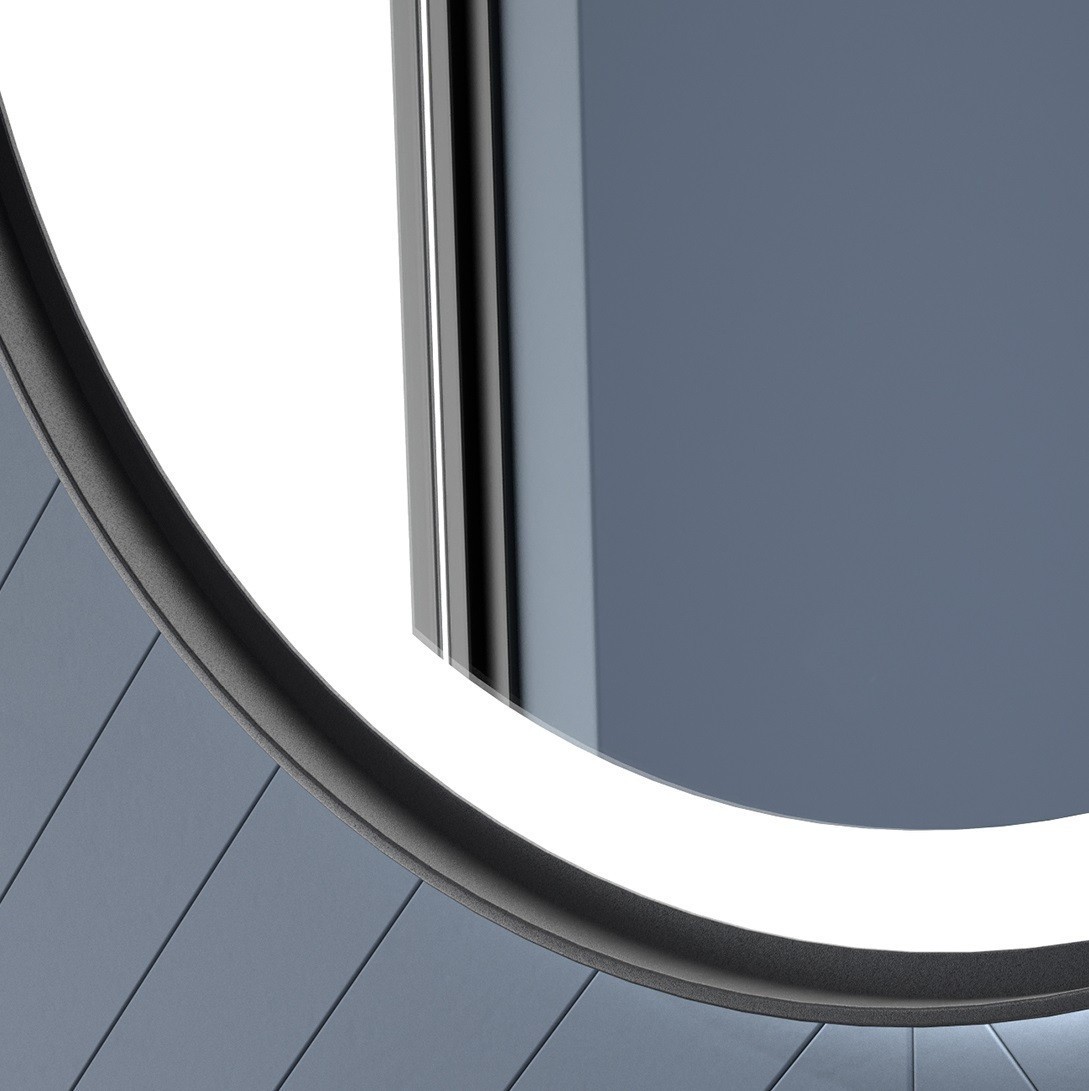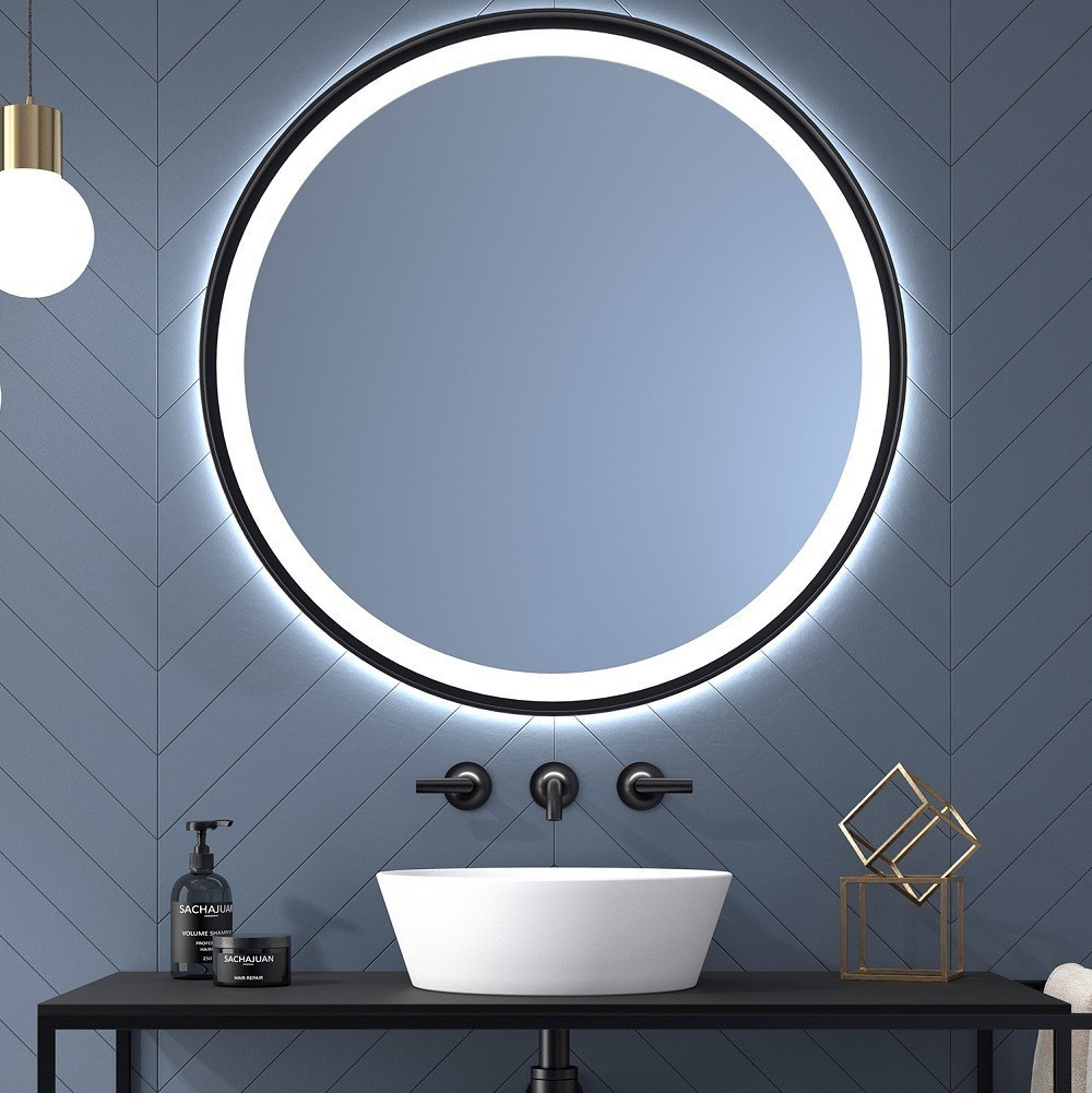 Specchio Da Bagno Rotondo con Luce e Cornice Nera