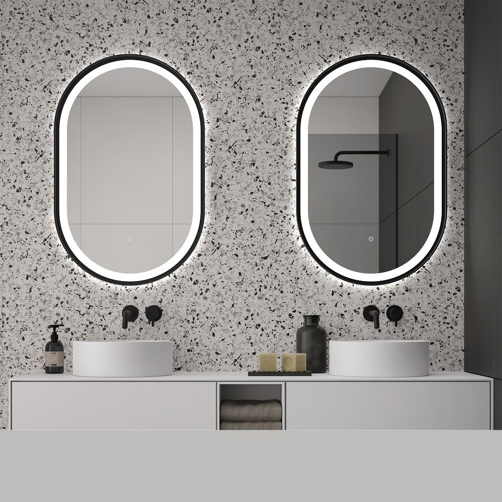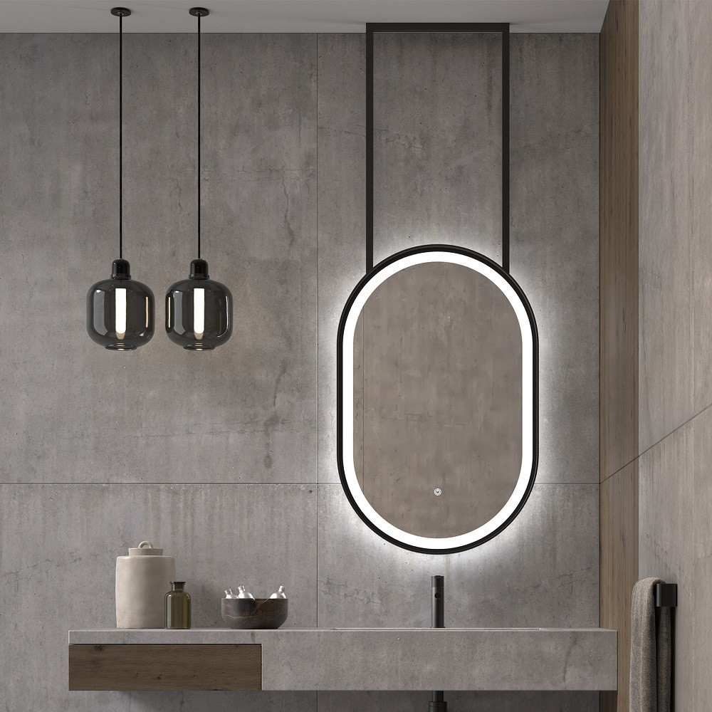 Questo specchio ovale verticale con bordo nero e retroilluminazione LED rappresenta la perfetta combinazione tra eleganza e modernità. La sua forma armoniosa, arricchita dal profilo scuro, lo rende uno specchio bagno di design capace di valorizzare ambienti contemporanei e minimalisti. La luce LED diffusa lungo il perimetro garantisce un’illuminazione uniforme e suggestiva, ideale per la cura quotidiana e per creare atmosfera. Realizzato in vetro di alta qualità, lo specchio retroilluminato è resistente, facile da installare e aggiunge stile esclusivo al tuo bagno.