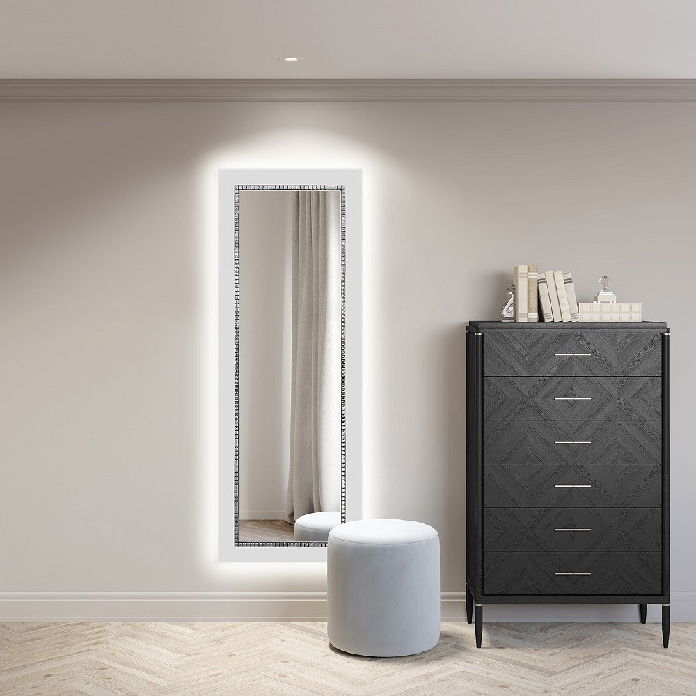 Specchio Per Cabina Armadio Cornice Bianca LED