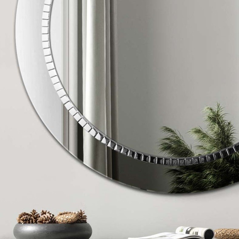 Lo specchio rotondo con cornice grafite e decorazione interna in mosaico argentato unisce eleganza contemporanea e raffinatezza artigianale. Il bordo scuro in finitura grafite crea un sofisticato contrasto con la superficie specchiante e il mosaico luminoso, che riflette delicatamente la luce. Ideale in soggiorno, ingresso o camera da letto, questo specchio decorativo è perfetto per ambienti dal design moderno o industriale. Dona profondità agli spazi e diventa un punto focale raffinato. Una scelta d’arredo che fonde estetica e funzionalità, per chi cerca specchi di design con cornice scura e dettagli di pregio.