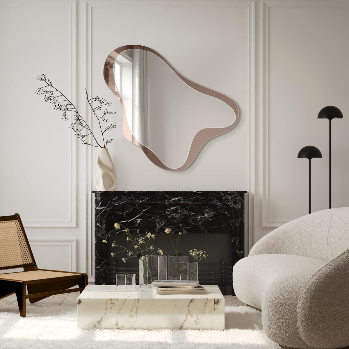 Specchio da parete con cornice in specchio marrone, ideale per ambienti caldi e raffinati. Il bordo in vetro specchiato color bronzo dona un tocco elegante e sofisticato, perfetto per arredare soggiorni, camere da letto o ingressi in stile contemporaneo, classico moderno o neutro. Questo specchio decorativo con cornice marrone riflette la luce con tonalità calde, creando un’atmosfera accogliente. Un complemento d’arredo originale e ricercato, perfetto per chi cerca uno specchio moderno con cornice specchiata che unisca design e calore visivo.