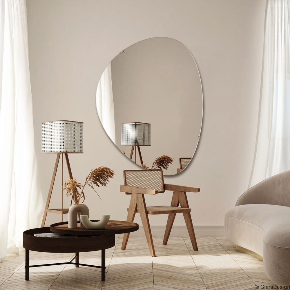 Delicato e contemporaneo, questo specchio asimmetrico senza cornice è la scelta ideale per chi desidera un look naturale e sofisticato. Perfetto per ambienti in stile Japandi, boho o minimalista. Lo specchio da parete decorativo si adatta con eleganza a ingressi, camere da letto o angoli lettura. La sua forma organica riflette armoniosamente la luce, ampliando visivamente lo spazio. Un vero oggetto di design, pensato per chi ama l’arredamento naturale e il design d’interni italiano contemporaneo, semplice ma ricercato nei dettagli.