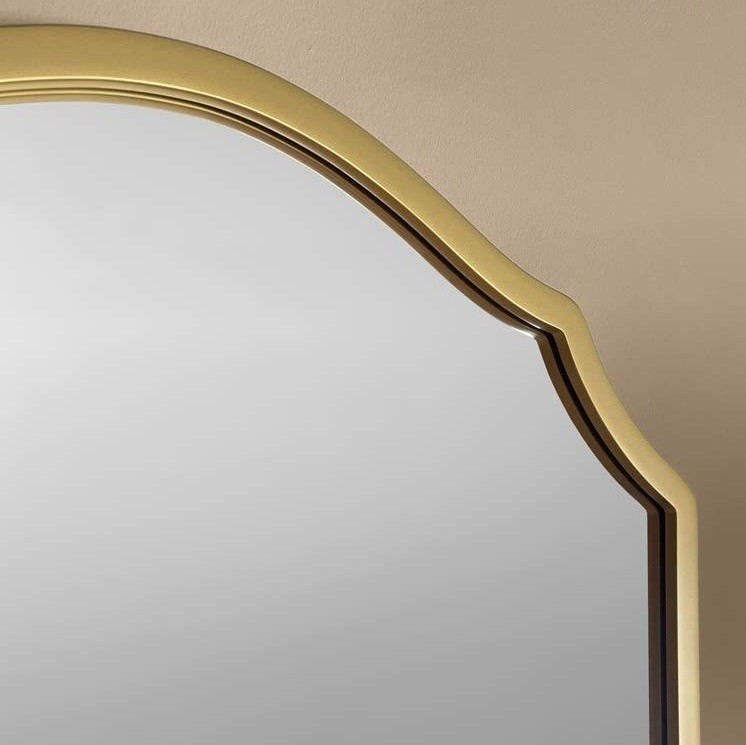 Questo specchio decorativo con cornice dorata sagomata è perfetto per ambienti sofisticati in stile classico o vintage. La forma elegante, con profilo bombato e curve morbide, dona carattere a ingressi, soggiorni o camere da letto. Il bordo dorato satinato riflette la luce con discrezione e si armonizza perfettamente con pareti rivestite da carta da parati floreale o mobili retrò. È una scelta raffinata per chi cerca uno specchio da parete elegante che unisca funzionalità e fascino decorativo. Realizzato con materiali resistenti, è ideale anche per boutique hotel e spazi dal design ricercato.
