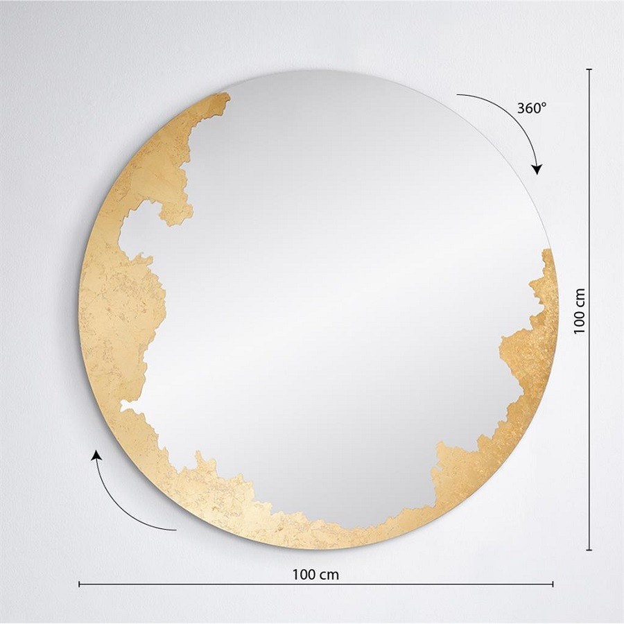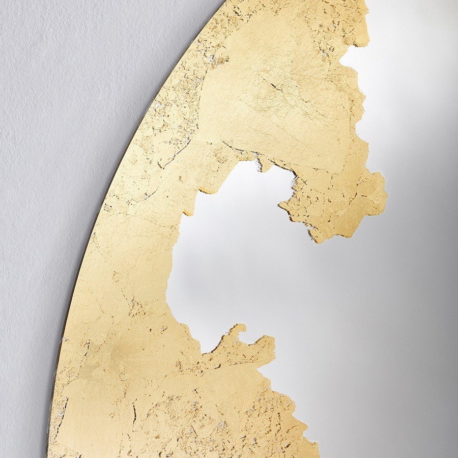 La bellezza del design dello specchio Ornato si apprezza nei dettagli, specialmente nelle foglie di oro zecchino applicate a mano che formano un motivo unico per ogni pezzo. Senza dubbio, questo specchio di design arricchirà le pareti con eleganza e raffinatezza. Lasciati ispirare dalla tua creatività e goditi le diverse posizioni in cui puoi collocare questo magnifico specchio.