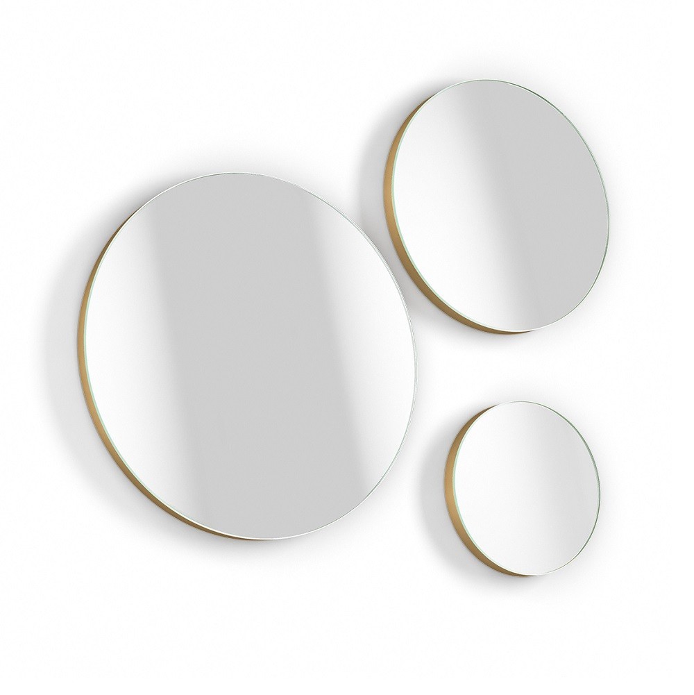 Set di 3 Specchi Rotondi con Cornice Dorata