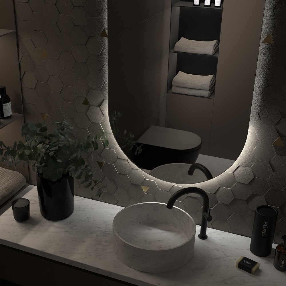 Lo specchio è dotato di retroilluminazione ambientale perimetrale (luce murale).