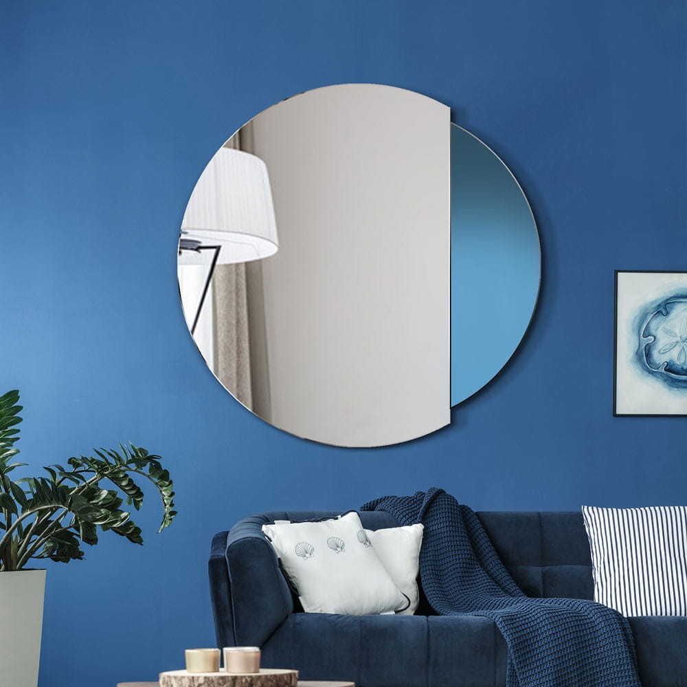 Lo specchio Eclipse con dettaglio azzurro è un elemento d’arredo moderno e originale, ideale per chi desidera personalizzare i propri spazi con stile. La sua forma rotonda e la combinazione dispecchio argentato e specchio blu creano un effetto grafico unico e luminoso. Perfetto su pareti blu o neutre, dona profondità e colore a soggiorni, camere da letto o ingressi. Un connubio di design minimal e vivacità cromatica che si adatta ad ambienti contemporanei, scandinavi o pop. Uno specchio decorativo che non passa inosservato.