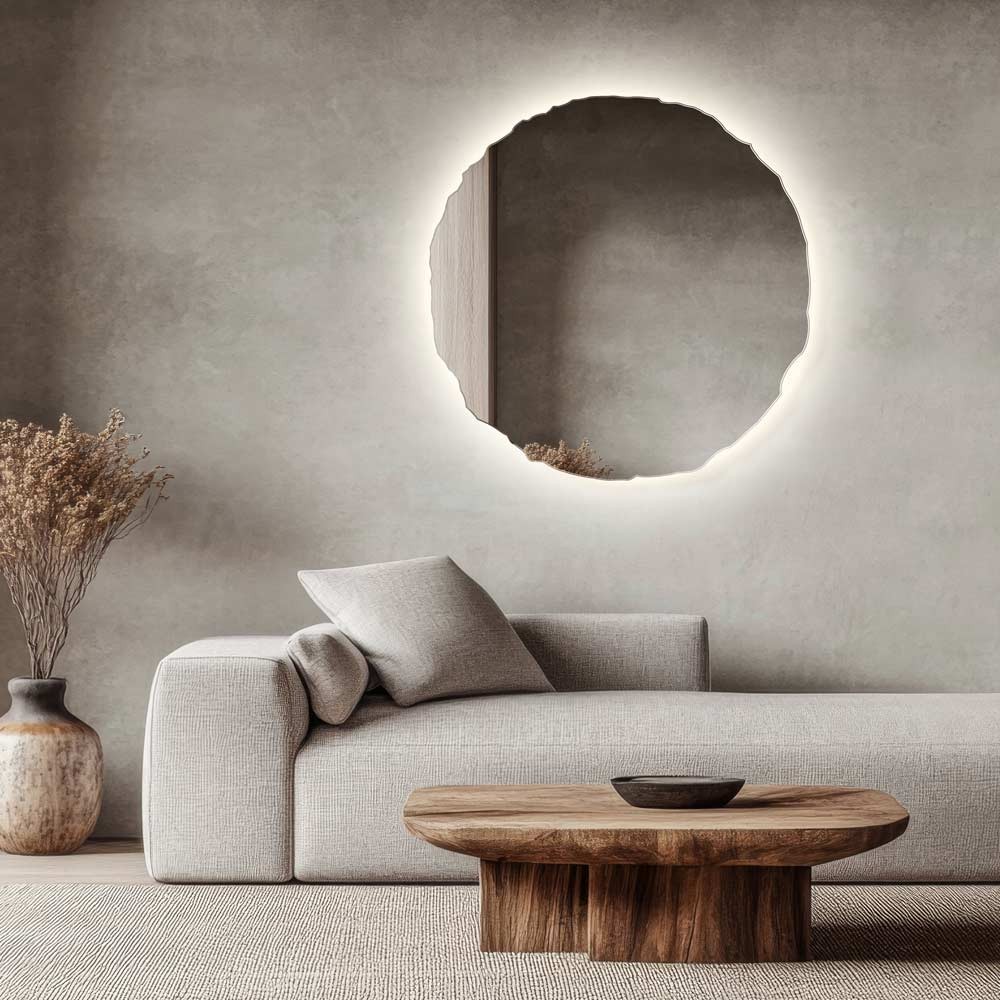 Lo specchio decorativo irregolare con illuminazione LED è un elemento d’arredo di grande impatto estetico. Le sue forme organiche e bordi scolpiti ricordano una pietra levigata, ideale per ambienti moderni, boho o naturali. La retroilluminazione LED soffusa crea un’atmosfera calda e rilassante, perfetta per soggiorni, camere da letto o ingressi. Questo specchio artistico da parete unisce design contemporaneo e funzionalità, donando carattere ed eleganza all’ambiente. Realizzato con materiali di alta qualità, è una scelta originale per chi ama lo stile sofisticato e naturale.