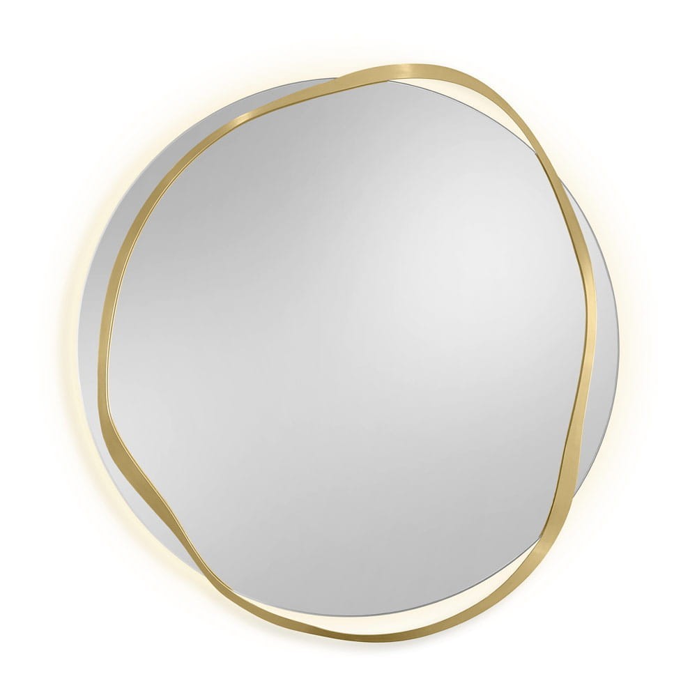 Lo specchio decorativo Banda è un pezzo unico che gioca con le forme e i materiali per creare un effetto visivo affascinante. È difficile definirne la forma esatta, poiché combina caratteristiche sia rotonde che irregolari. La cornice irregolare in ottone sembra contrastare con la forma circolare dello specchio stesso, aggiungendo un tocco decorativo distintivo. L'ottone naturale, con il suo caldo tono dorato, introduce un elemento di eleganza e bellezza senza tempo nell'ambiente. La forma organica della cornice si inserisce perfettamente nelle tendenze contemporanee, sottolineando al contempo l'individualità e la raffinatezza di qualsiasi spazio.