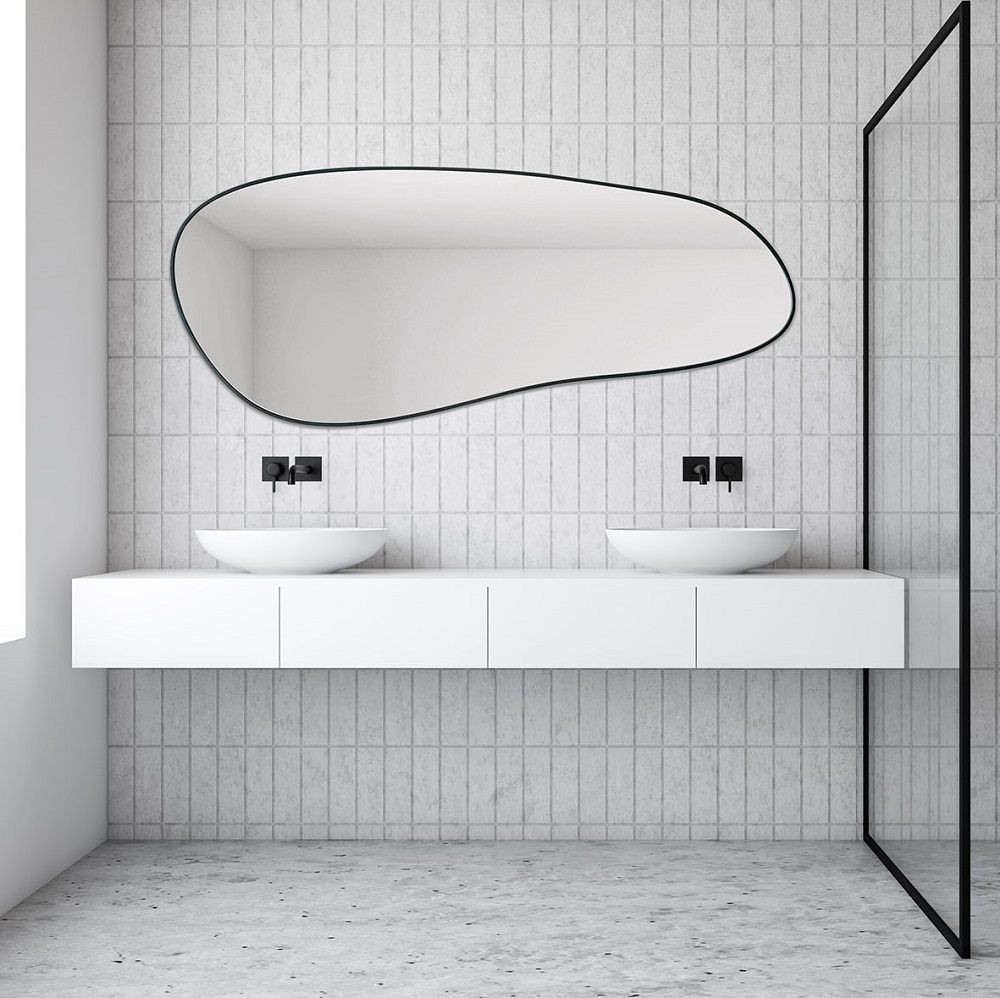 Questo specchio da bagno asimmetrico retroilluminato con cornice nera è la scelta perfetta per un bagno moderno ed elegante. Il suo design organico dona un tocco di originalità, mentre l’illuminazione LED integrata crea un’atmosfera sofisticata e funzionale. La cornice nera evidenzia la forma irregolare, abbinandosi perfettamente a rubinetteria e dettagli in nero opaco. Ideale per ambienti minimalisti, trasforma il bagno in uno spazio esclusivo.