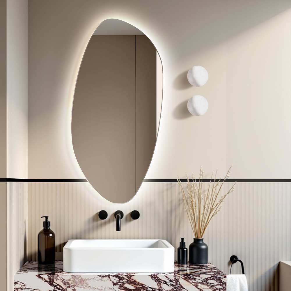 Scopri lo stile essenziale dello specchio retroilluminato da bagno asimmetrico, perfetto per arredare ambienti moderni con un tocco di originalità. La forma organica e sinuosa lo rende un vero elemento di design, ideale per bagni contemporanei. La retroilluminazione LED integrata crea un’atmosfera rilassante e diffonde una luce morbida, perfetta per il comfort visivo. Questo specchio da parete decorativo unisce estetica e funzionalità in un’unica soluzione d’arredo. Ideale per chi ama il design minimal e sofisticato.