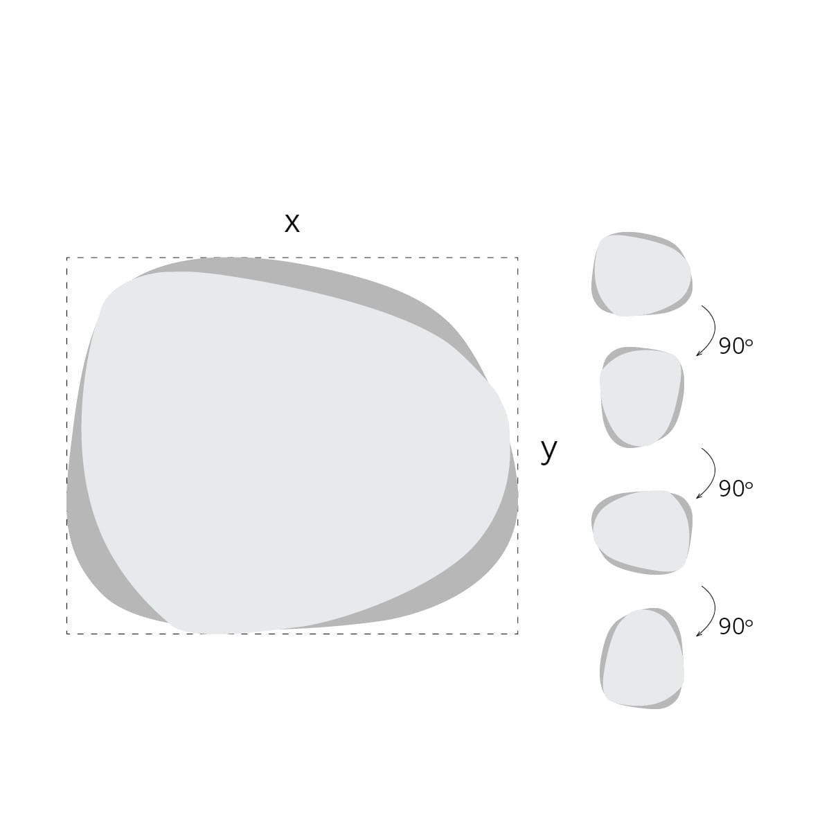 - Dimensioni nel punto più largo: 80x66, 90x74, 100x83 cm.