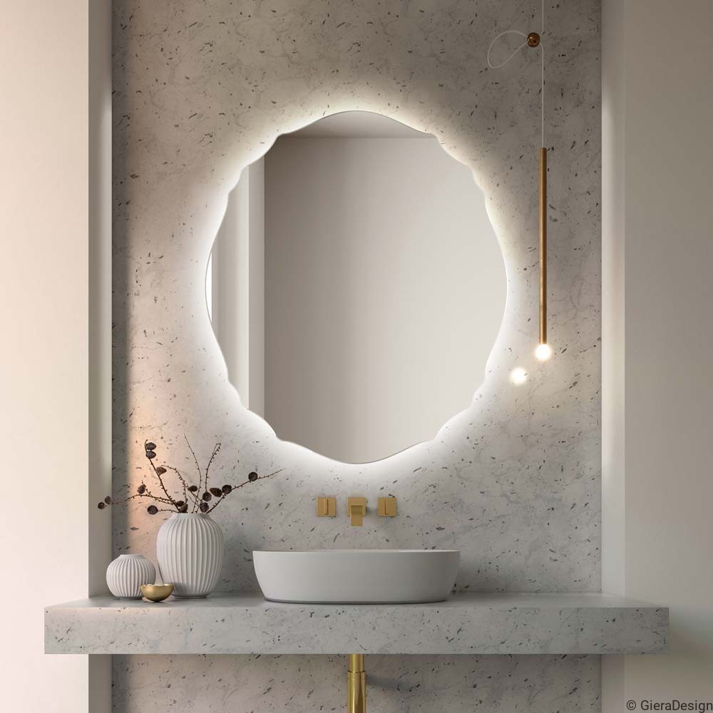 Lo specchio Grand Mono retroilluminato dona eleganza e teatralità all’ambiente bagno grazie al suo design asimmetrico e irregolare, ispirato a forme organiche. La luce LED integrata crea un effetto scenografico sulla parete, valorizzando rivestimenti in marmo o pietra naturale. Perfetto per bagni sofisticati, si abbina splendidamente a rubinetteria dorata e decorazioni minimal chic. Ideale per chi cerca uno specchio moderno con illuminazione, funzionale e decorativo. Disponibile in varie dimensioni, si adatta a spazi contemporanei, japandi o glamour. Il bordo satinato e la forma fluida rendono questo specchio un elemento distintivo in qualsiasi arredo bagno di design.