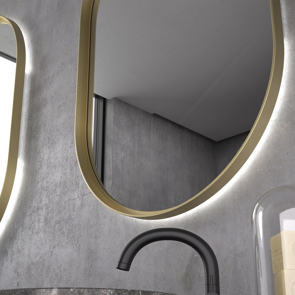 Questo specchio ovale verticale con cornice dorata e retroilluminazione LED combina design moderno e raffinatezza classica. La sua forma armoniosa e slanciata lo rende ideale per bagni eleganti e contemporanei, mentre la luce LED diffusa lungo il profilo dorato crea un’illuminazione uniforme e suggestiva. Realizzato in vetro di alta qualità, garantisce durata, nitidezza e facilità di installazione. Lo specchio bagno dorato retroilluminato aggiunge un tocco esclusivo e sofisticato, trasformando lo spazio in un ambiente accogliente e di grande stile.