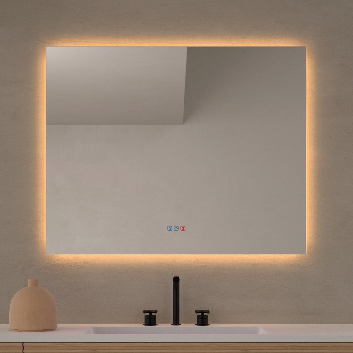 Specchio bagno moderno con retroilluminazione LED perimetrale che diffonde una luce morbida e uniforme, ideale per creare un’atmosfera rilassante e sofisticata. La superficie liscia, priva di cornice, esalta il design minimalista e si integra perfettamente in ambienti contemporanei. Realizzato in vetro di alta qualità, garantisce un riflesso nitido e durevole. Dotato di pulsante touch per accendere, spegnere e regolare la temperatura di colore, combina estetica e funzionalità per un bagno elegante e accogliente.