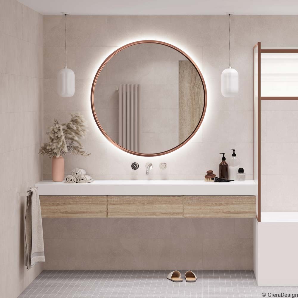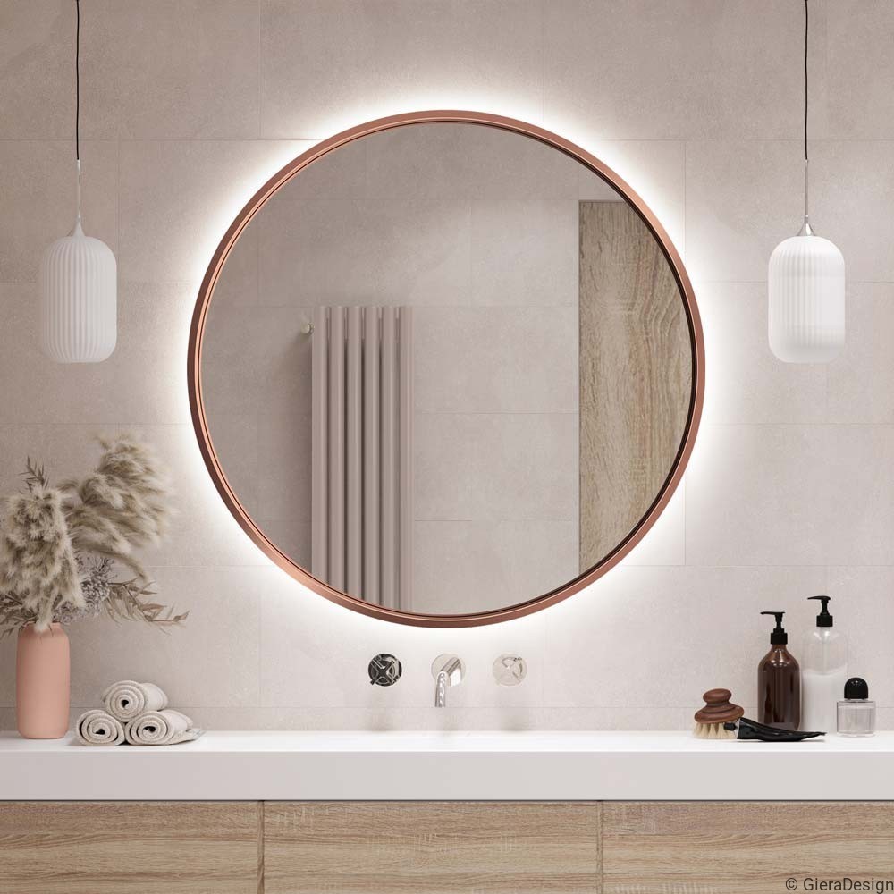 Specchio Bagno Rotondo LED Cornice Rame