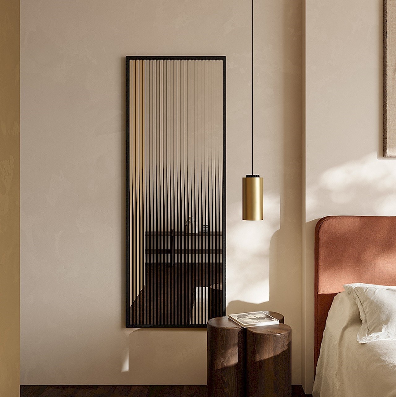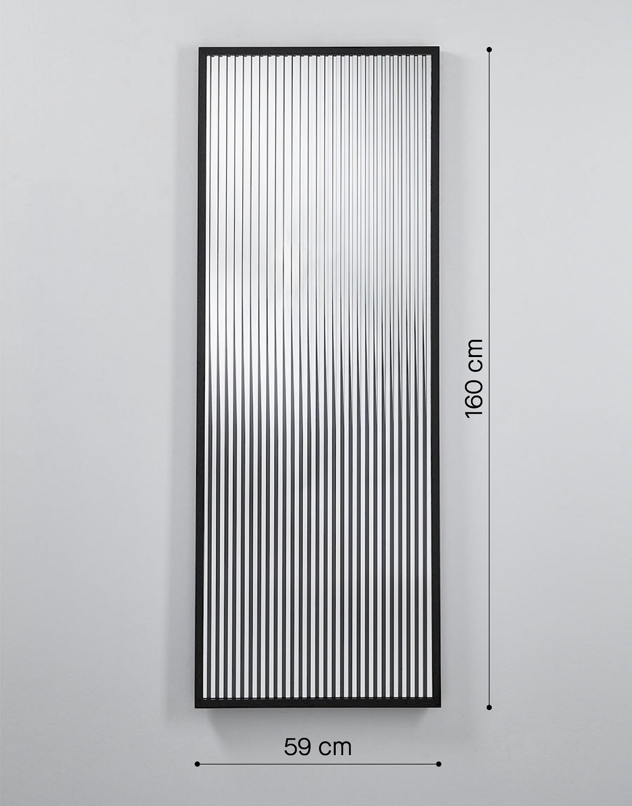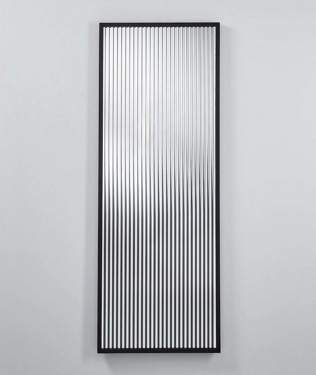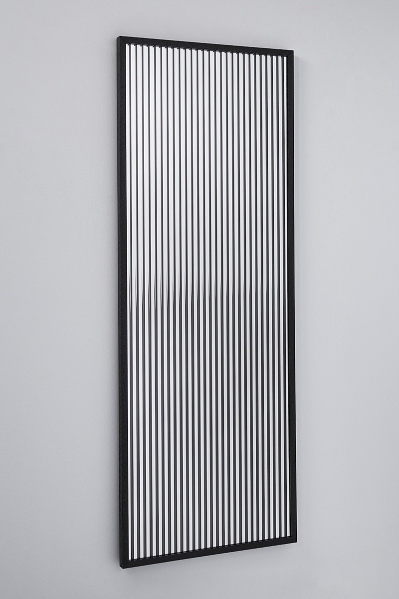 Attitude esplora il fenomeno affascinante della riflessione e della rifrazione. Questo specchio di design è composto da due specchi, dove strisce verticali trasparenti, riflettenti e nere stampate si combinano perfettamente. Insieme, creano un riflesso che cambia in base alla tua prospettiva. Dal fronte, è visibile solo lo specchio, ma spostandoti, le strisce dello specchio sembrano muoversi, generando riflessi sorprendenti e mutevoli che rivelano le strisce nere.