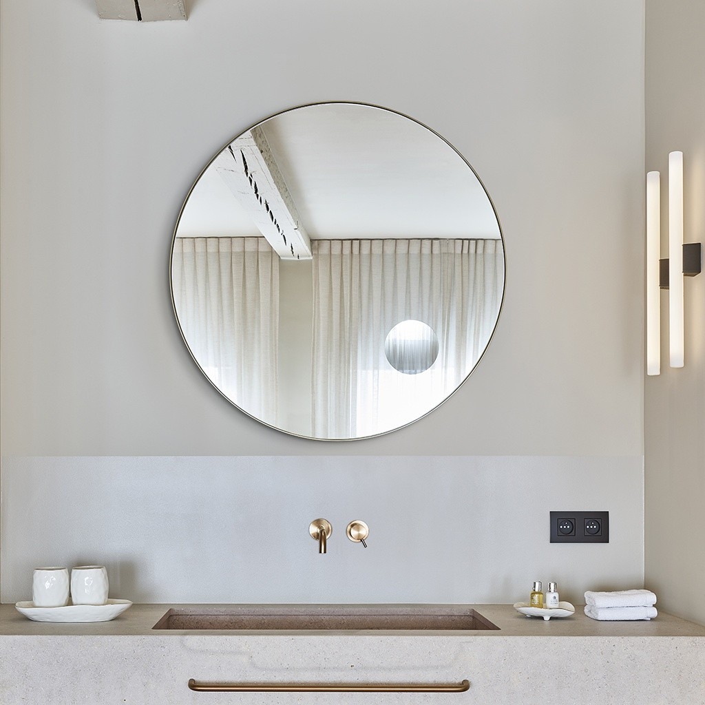 Specchio rotondo per bagno Hoop Zoom. L’eleganza di questo specchio Hoop Zoom è accentuata dalla sua forma semplice, dai dettagli raffinati e dalla cornice minimalista color bronzo. Le sue linee morbide lo rendono perfettamente adattabile a qualsiasi tipo di interno, che sia scandinavo, eclettico, classico o moderno. Questo elegante specchio rotondo aggiungerà stile e raffinatezza al tuo bagno, alla camera da letto, alla cabina armadio o a qualsiasi altro ambiente in cui lo collochi.