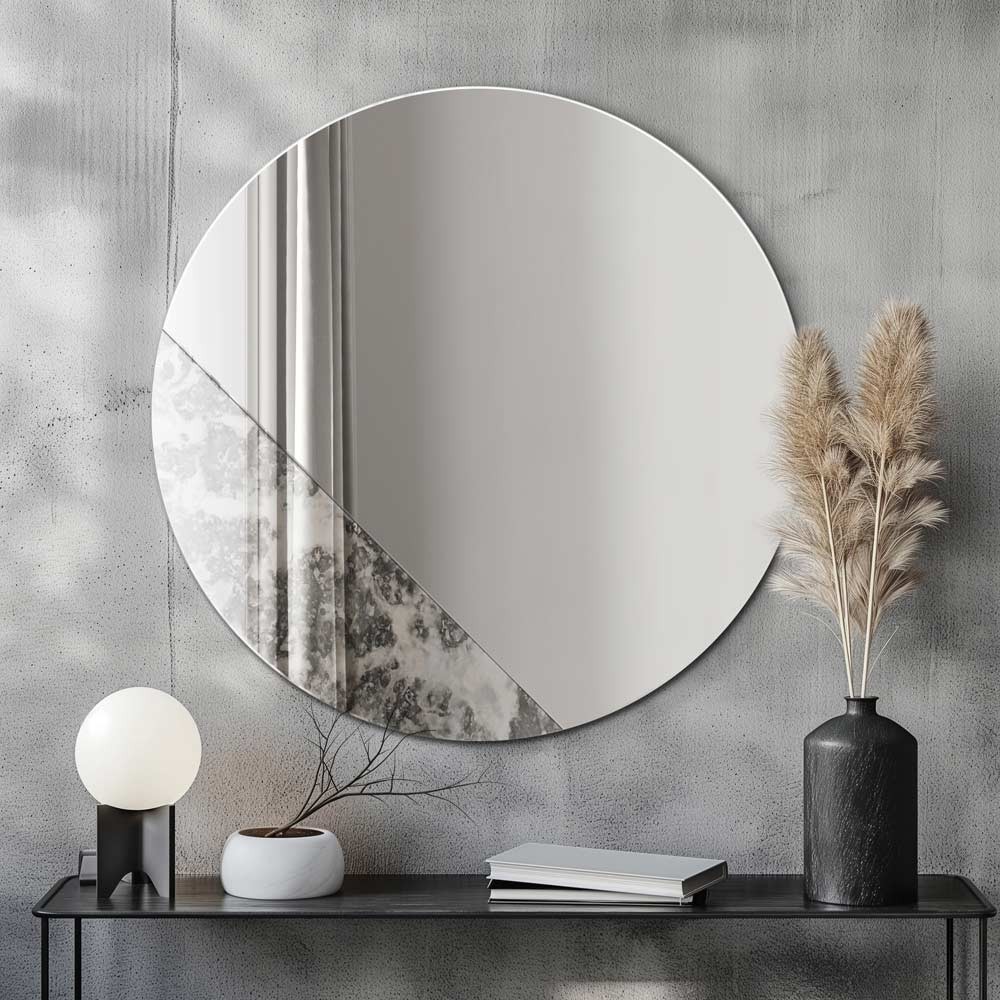 Specchio rotondo con inserto in specchio invecchiato, perfetto per ambienti eleganti, industrial o retrò. Il design geometrico unisce modernità e fascino vintage, grazie alla finitura anticata che arricchisce la superficie riflettente. Ideale per arredare ingressi, camere da letto o soggiorni con carattere, questo specchio decorativo aggiunge profondità e texture alla parete. Un complemento d’arredo raffinato e originale, pensato per chi cerca dettagli unici in un interno contemporaneo o classico rivisitato.